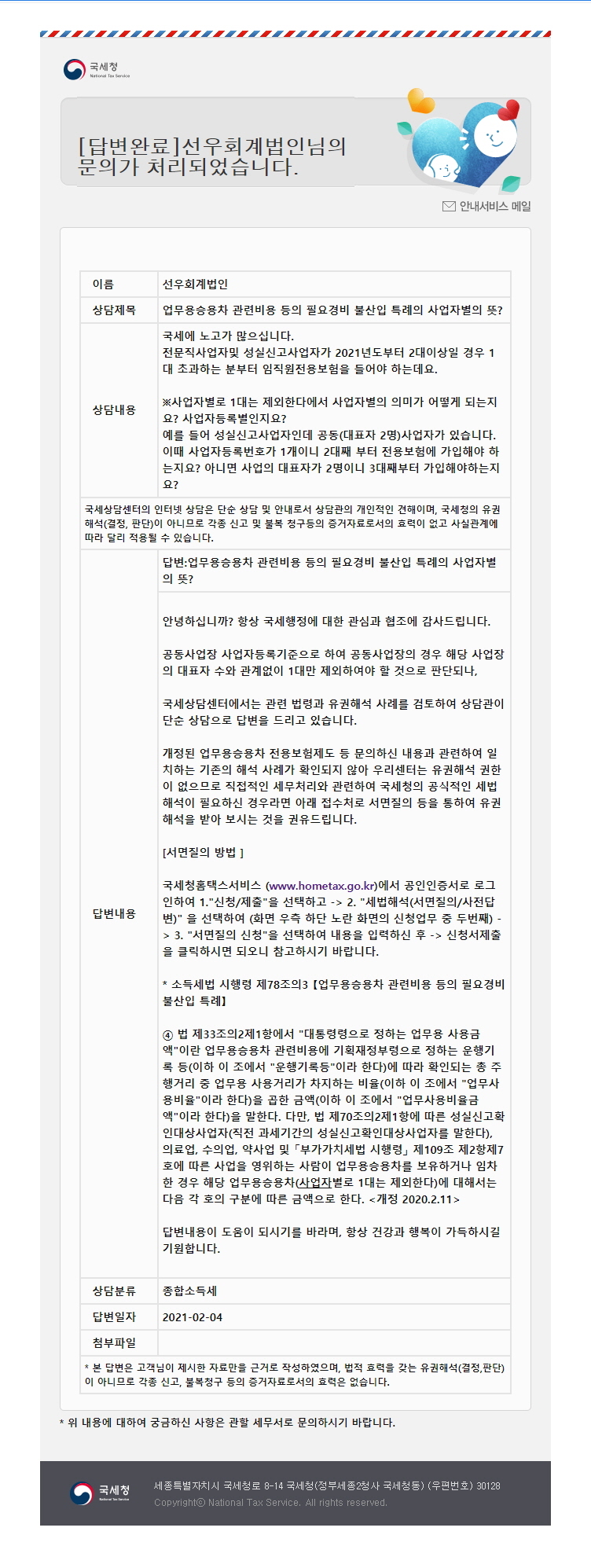 업무용승용차 임직원보험 사업자별 1대? 공동사업자? 작성자주황규|작성시간21.02.09|조회수479 목록 댓글 0 글자크기 작게가 글자크기 크게가 다음검색 현재 게시글 추가 기능 열기 북마크 공유하기 신고 센터로 신고 댓글 댓글 0 댓글쓰기 답글쓰기 댓글 리스트