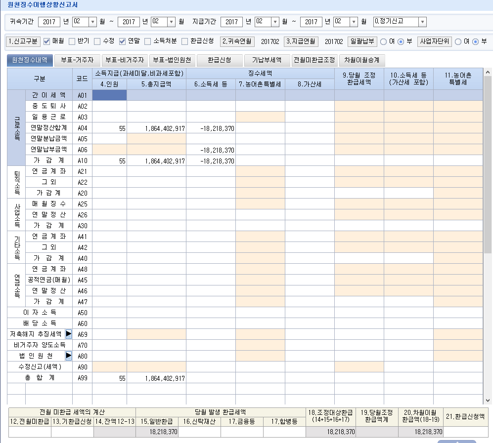 근로소득 연말정산  55    1,864,402,917             -18,218,370                   18,218,370원