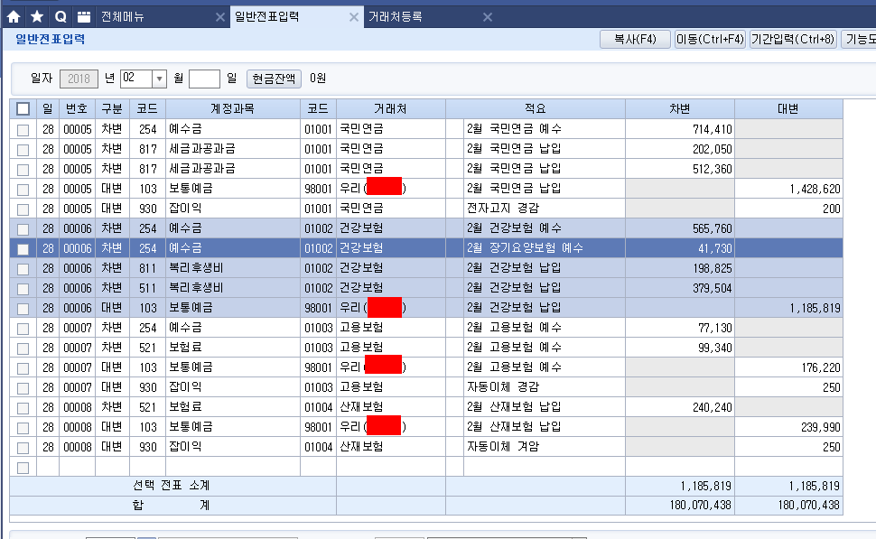 미지급급여 계정과목을 만들고 - 사원별로 거래처 코드를 만들어서 하는 방법