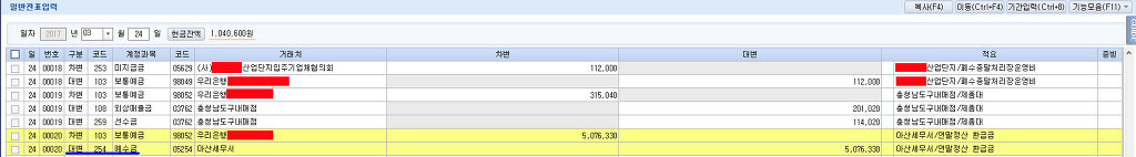 대변 예수금 958,100 거래처 아산시청