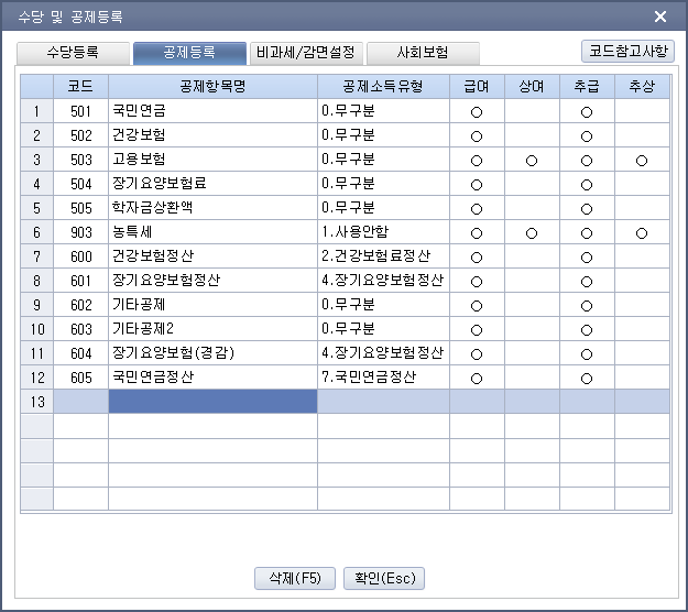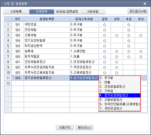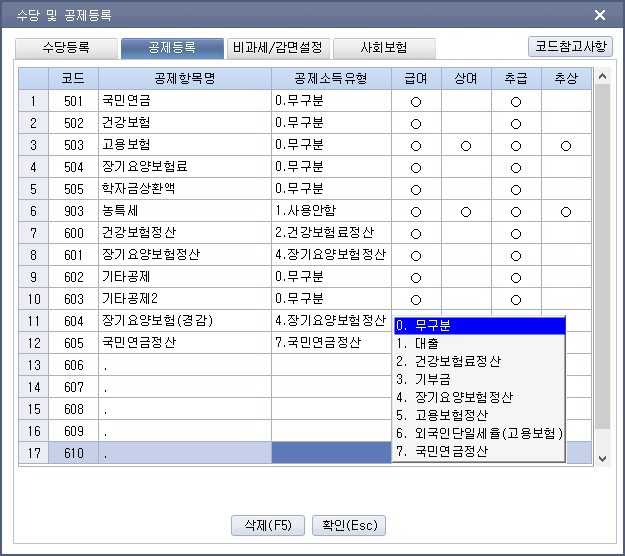 공제등록 - 0.무구분 1.대출 2.건강보험정산 3.기부금 4.장기요양보험정산 5.고용보험정산 6.외국인단일세율(고용보험) 7.국민연금정산 작성자주자몽|작성시간19.03.22|조회수400 목록 댓글 0 글자크기 작게가 글자크기 크게가 다음검색 현재 게시글 추가 기능 열기 북마크 공유하기 신고 센터로 신고 댓글 댓글 0 댓글쓰기 답글쓰기 댓글 리스트
