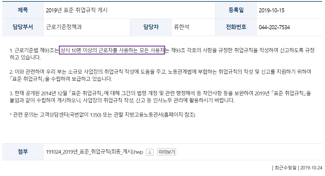 이 규칙을 변경할 때에는 근로자의 과반수로 조직된 노동조합이 없는 경우 근로자의 과반수 의견을 청취하도록 한다. 다만, 취업규칙을 불리하게 변경하는 경우에는 그 동의를 받아야 한다.
