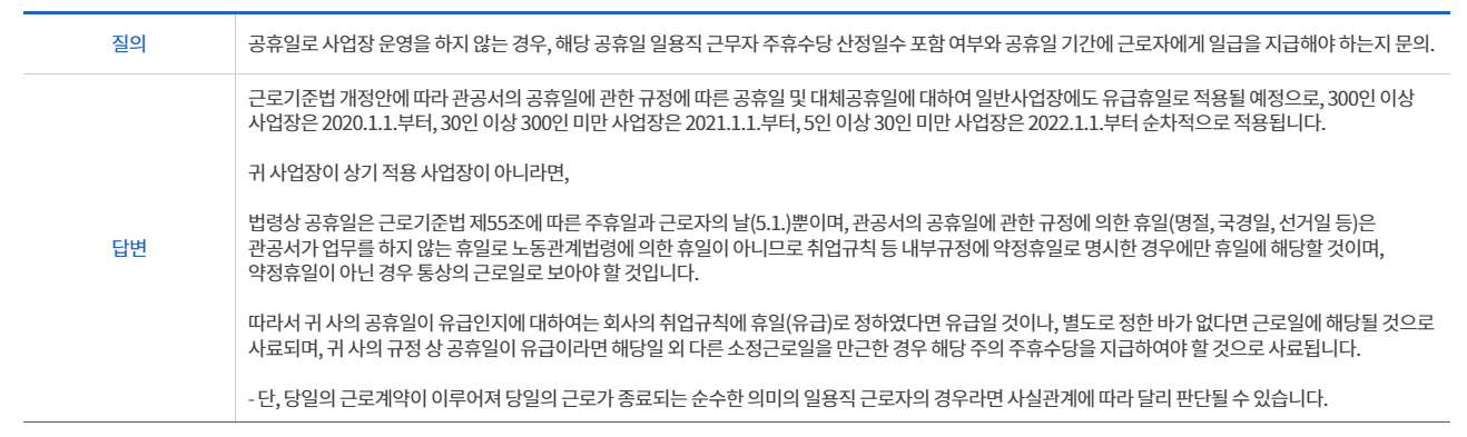 노동청에서는 1주 5일 이상 규칙적인 근로시간이 있으면 규칙적이라고 보고