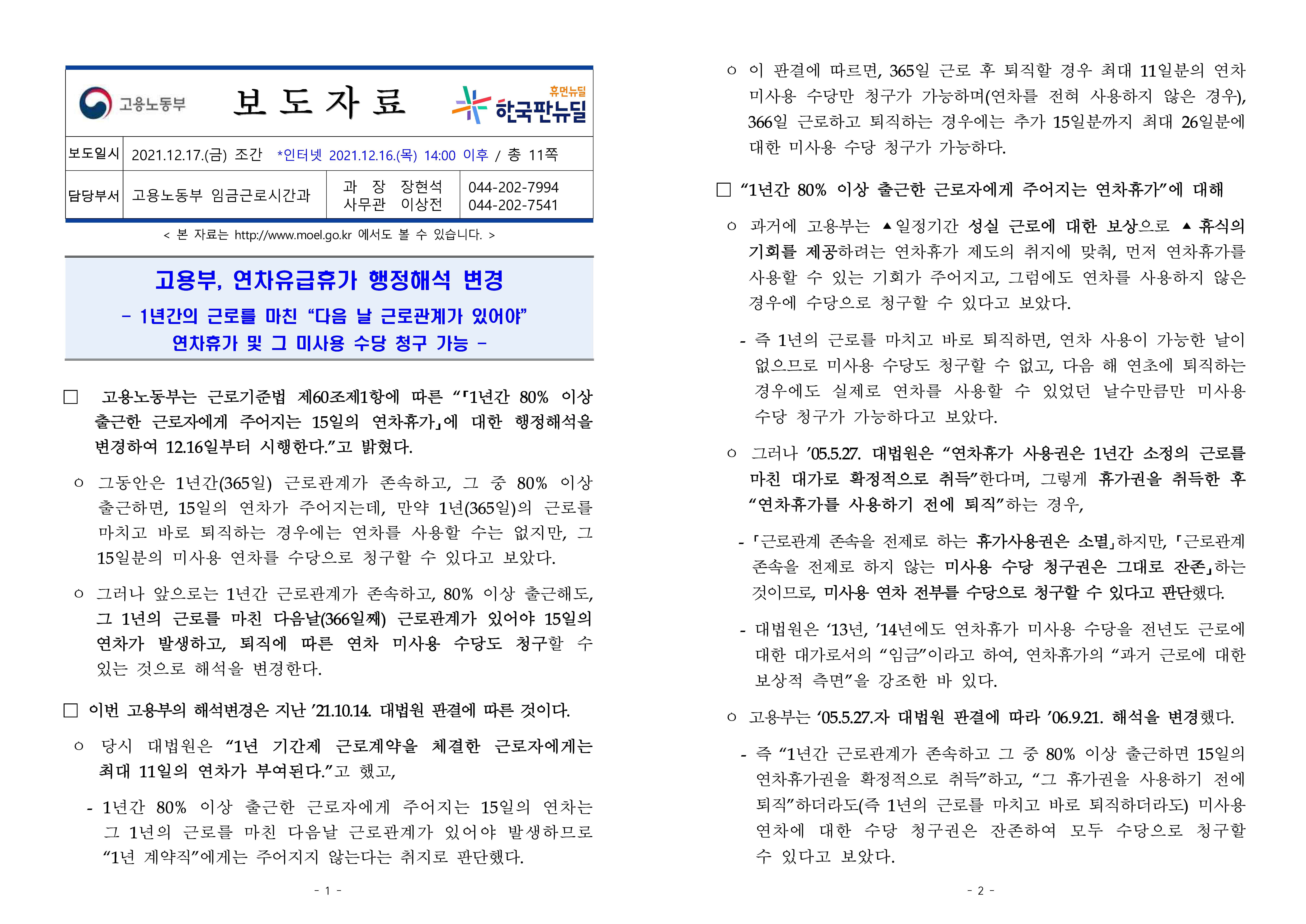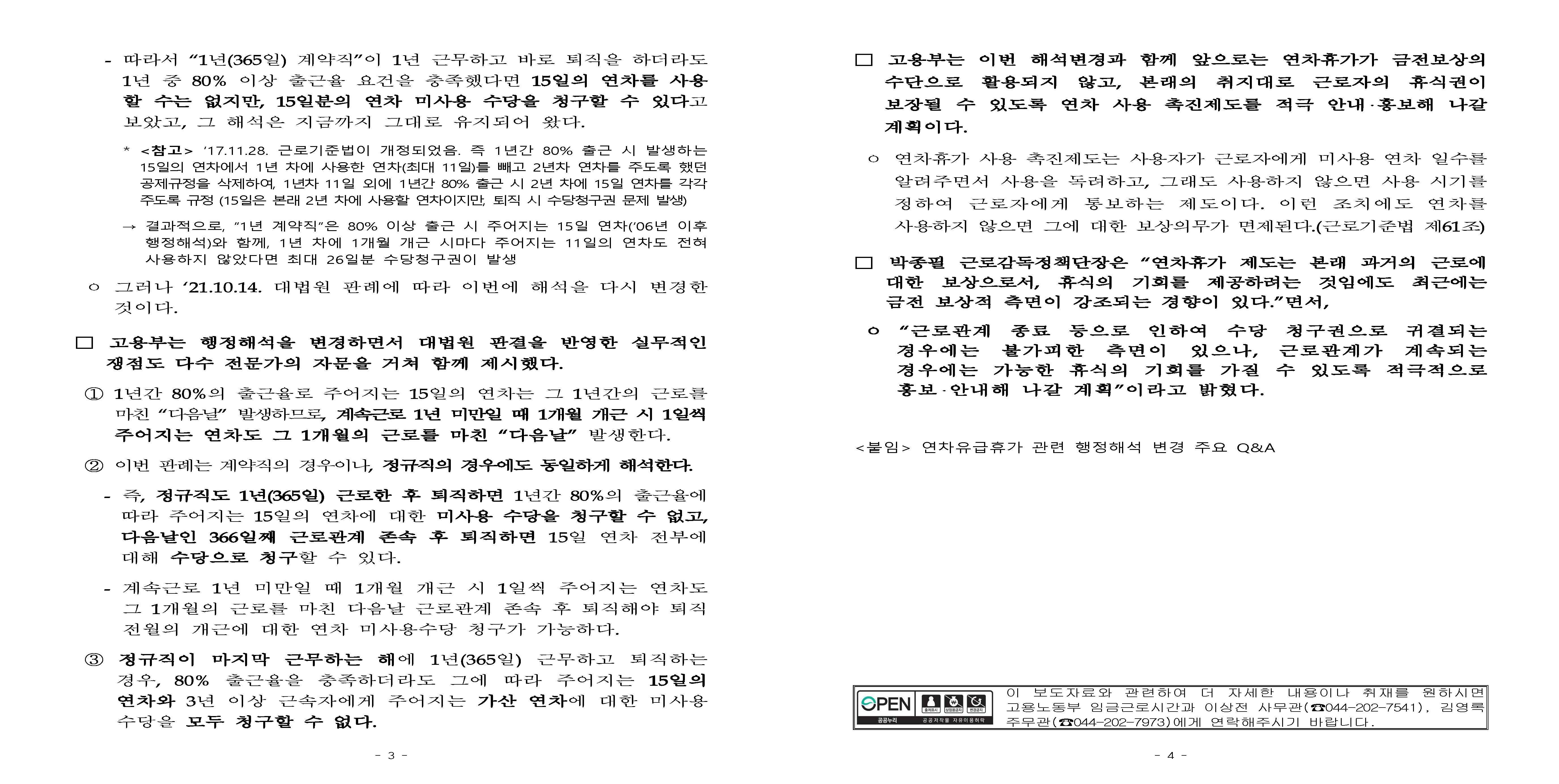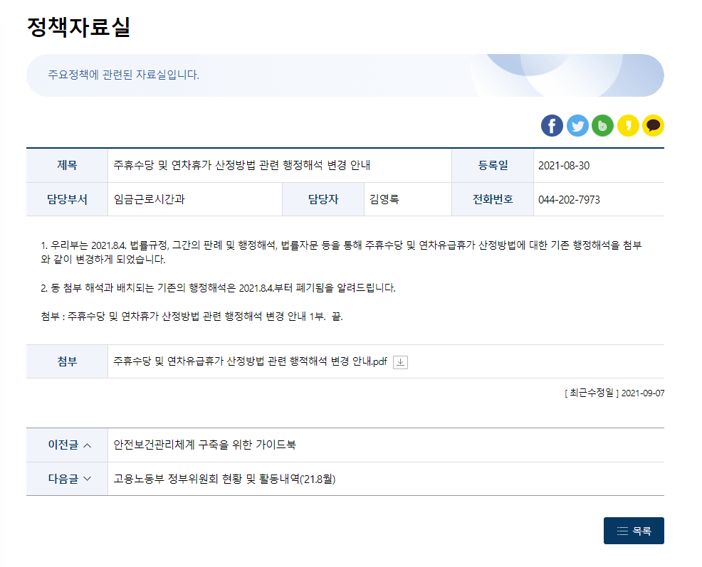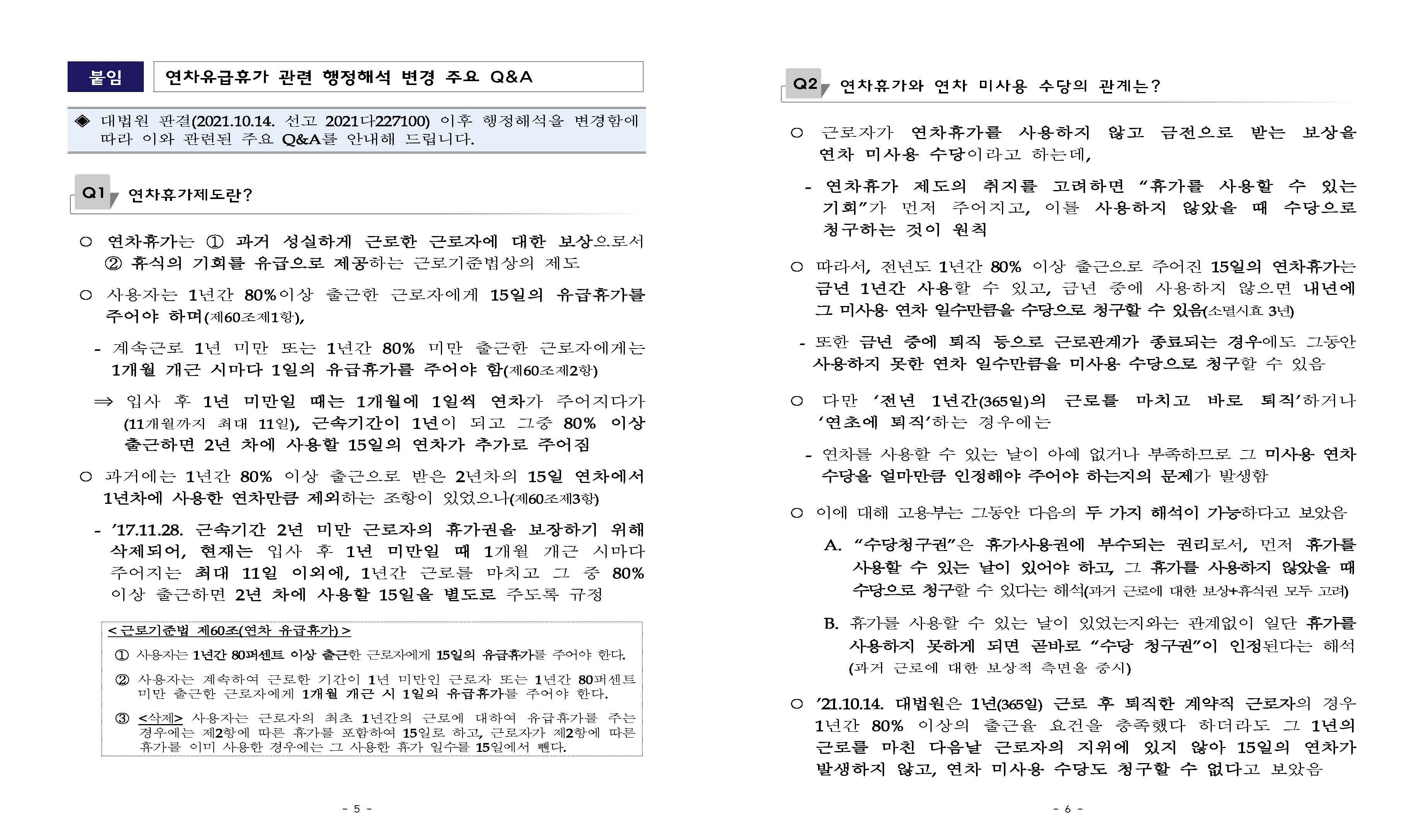 주휴수당 및 연차휴가 관련 고용노동부 행정해석 변경_2021-08-04 노무법인 예성