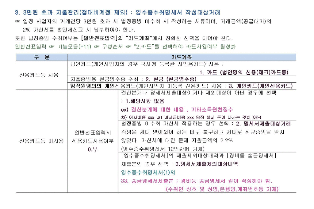 3. 3만원초과 지출관리 : 영수증수취명세서 작성대상 거래