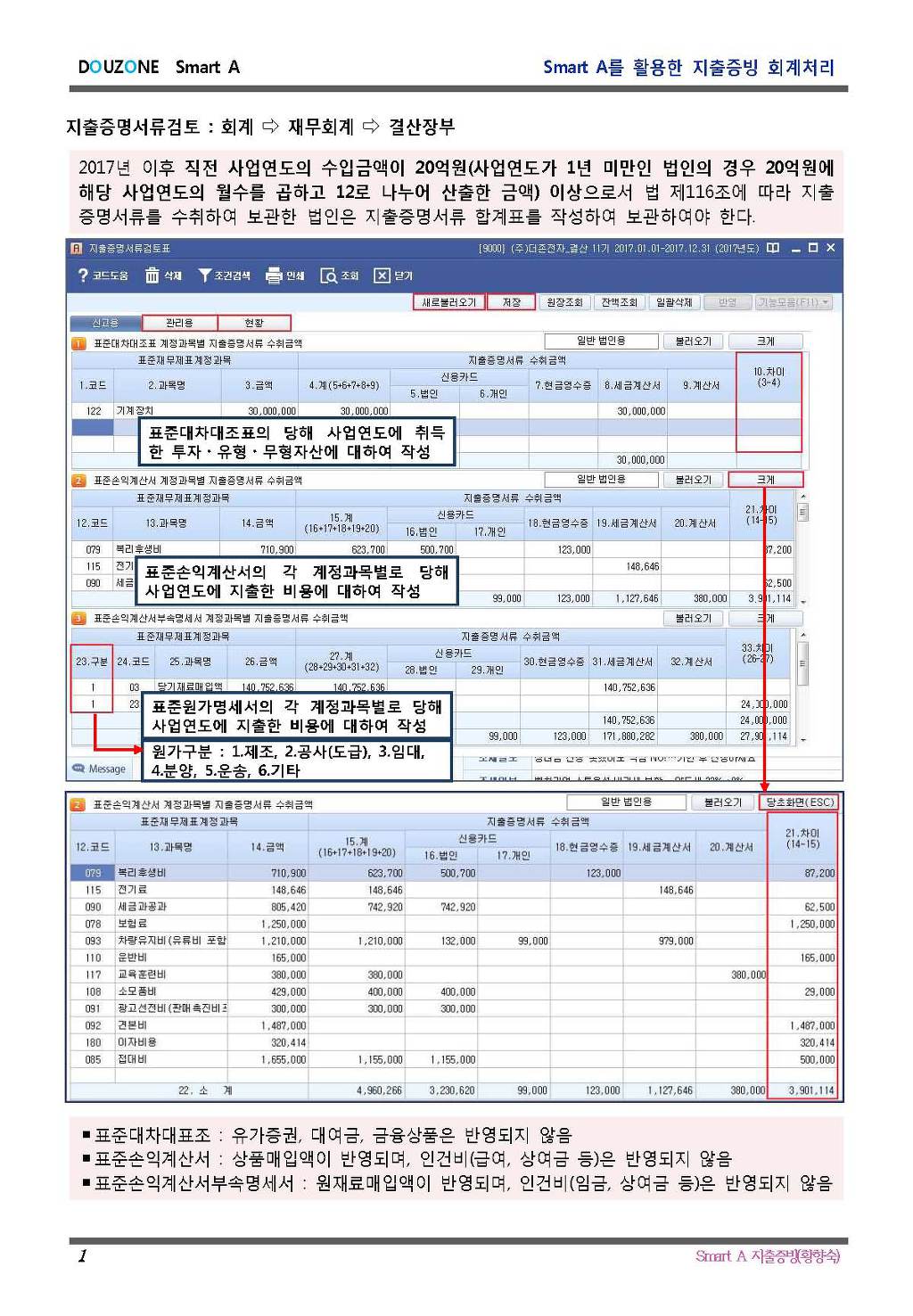 2017년귀속 : 반드시 제출 (지출증명서류합계표)