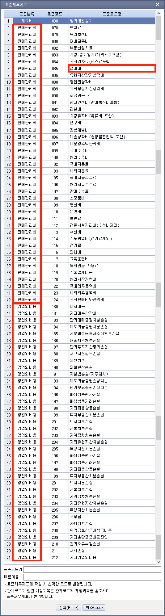 국외지출 접대비 | 843(00).해외접대비 계정과목 사용하여 분모자리에 자동반영 하며, 신용카드등 미사용 시 적요코드번호 결정하여 지속적으로 일관성 있게 사용하여 조정서에 반영 | |