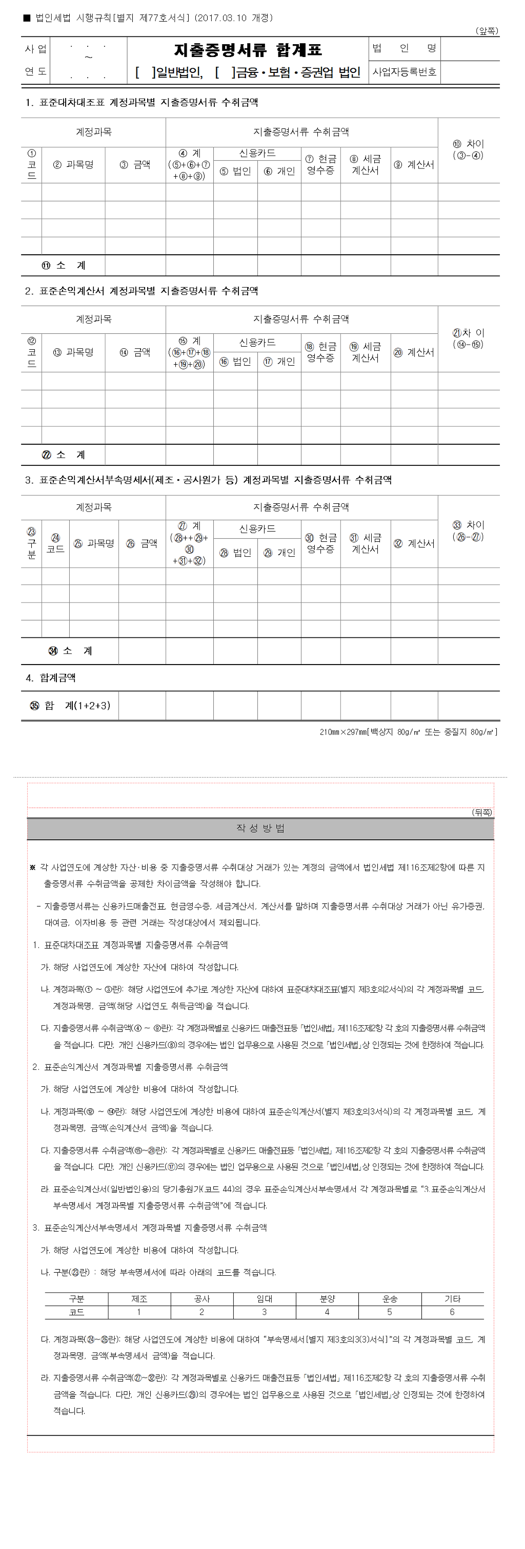 지출증명서류 합계표 법인세법 시행규칙 별지 제77서식.hwp