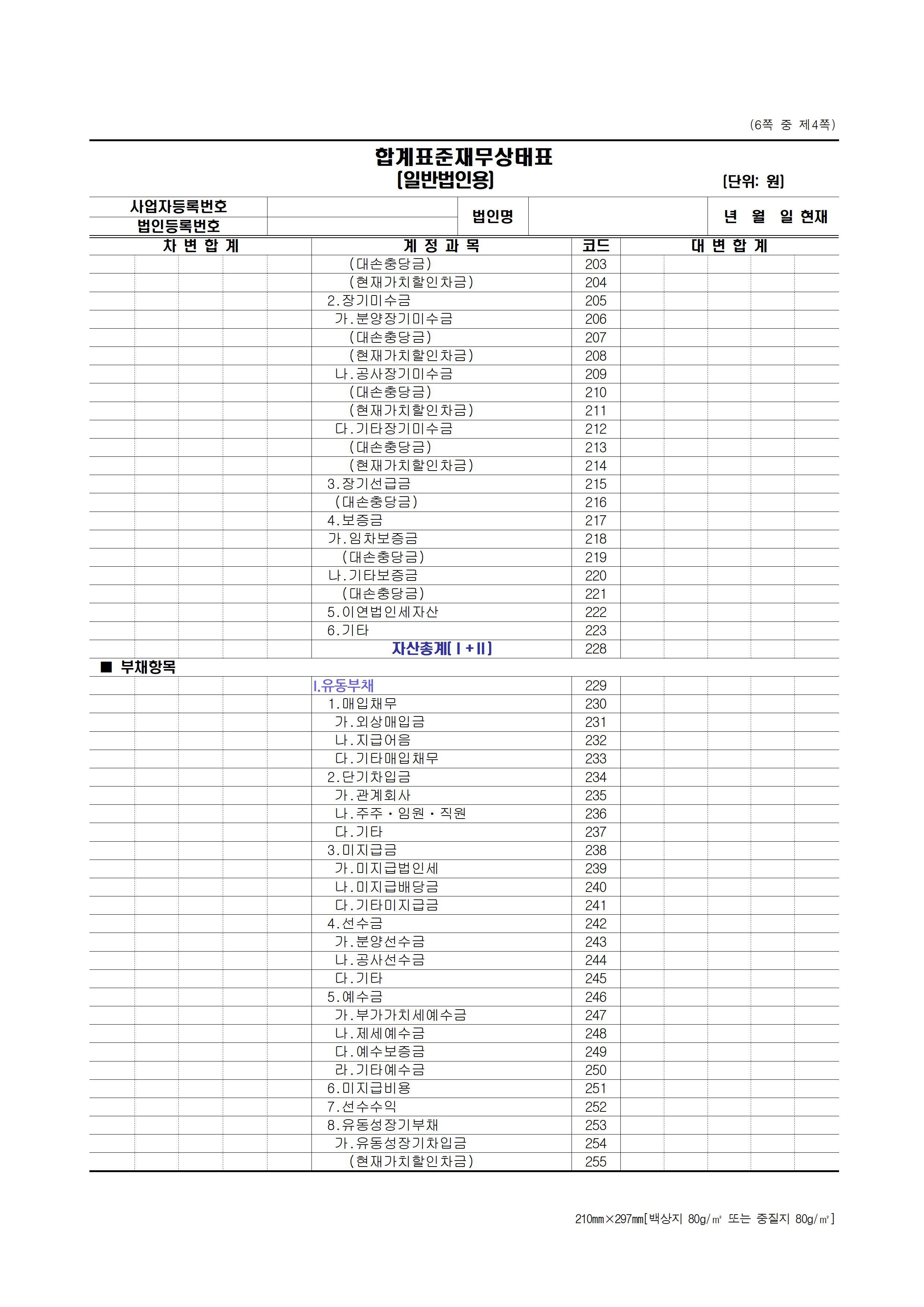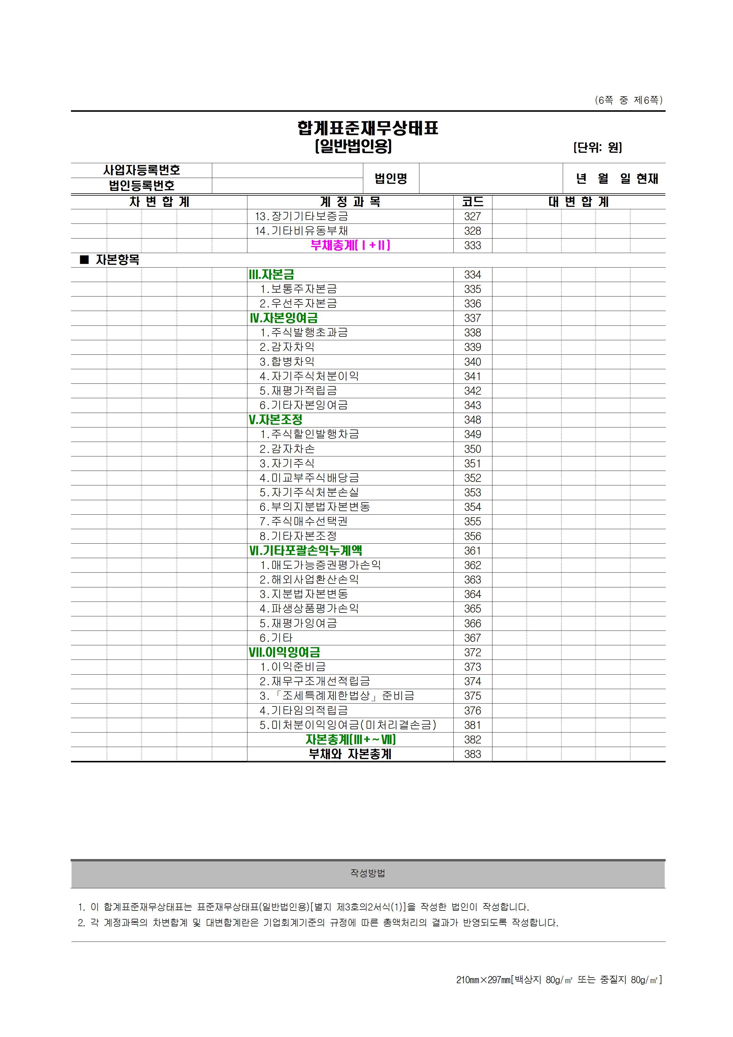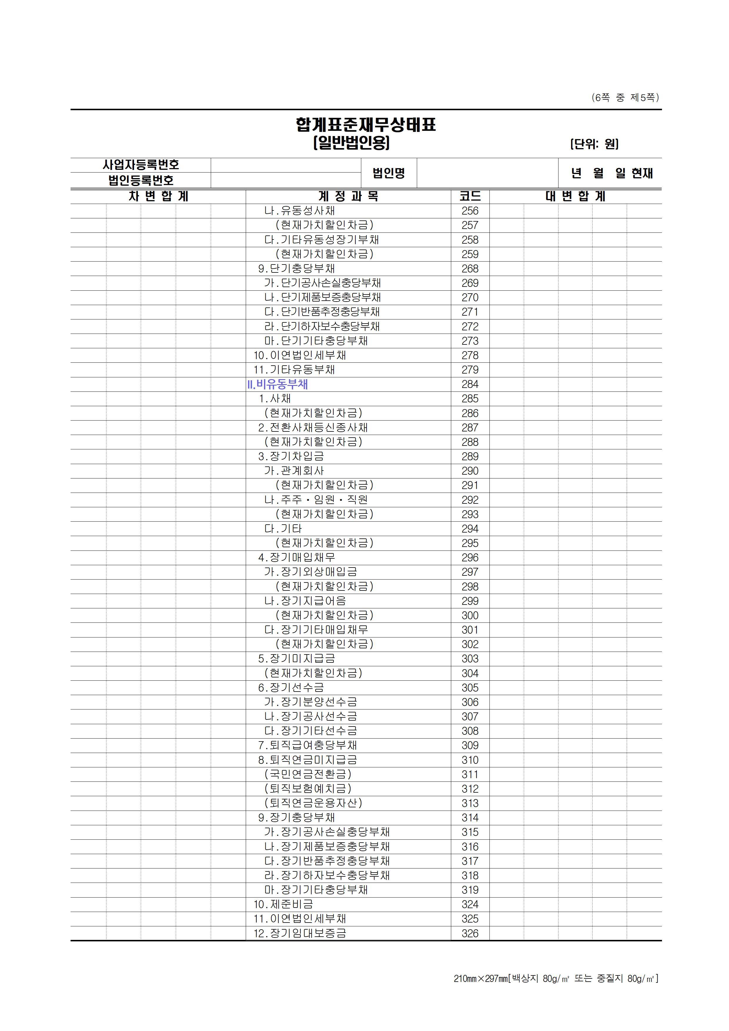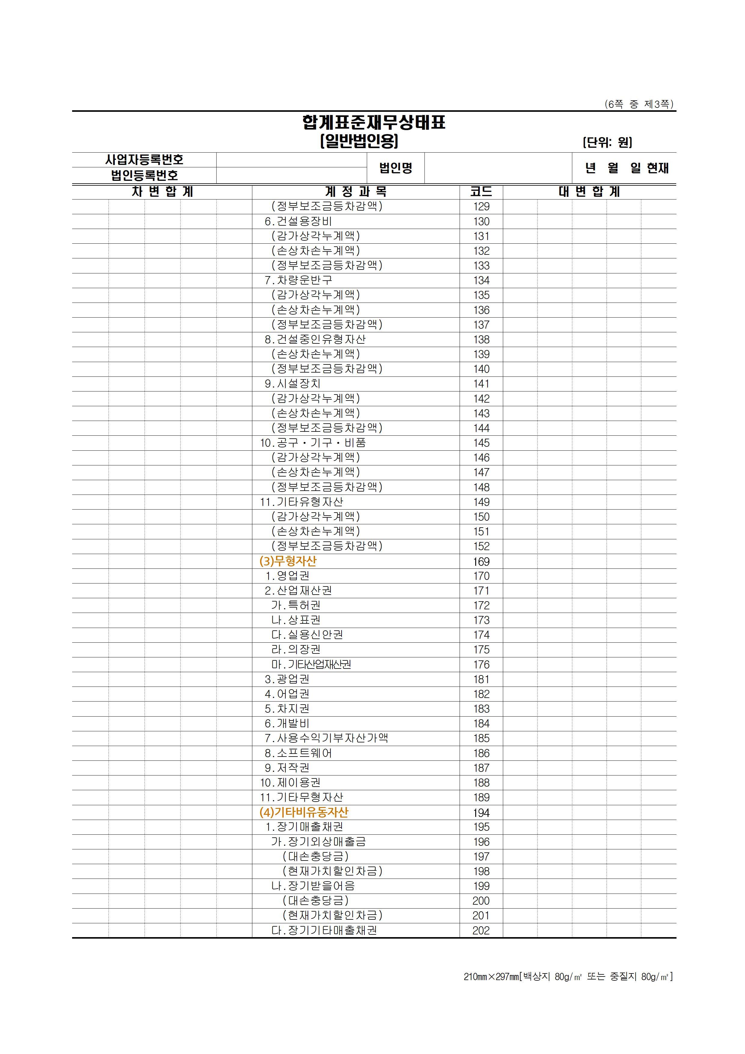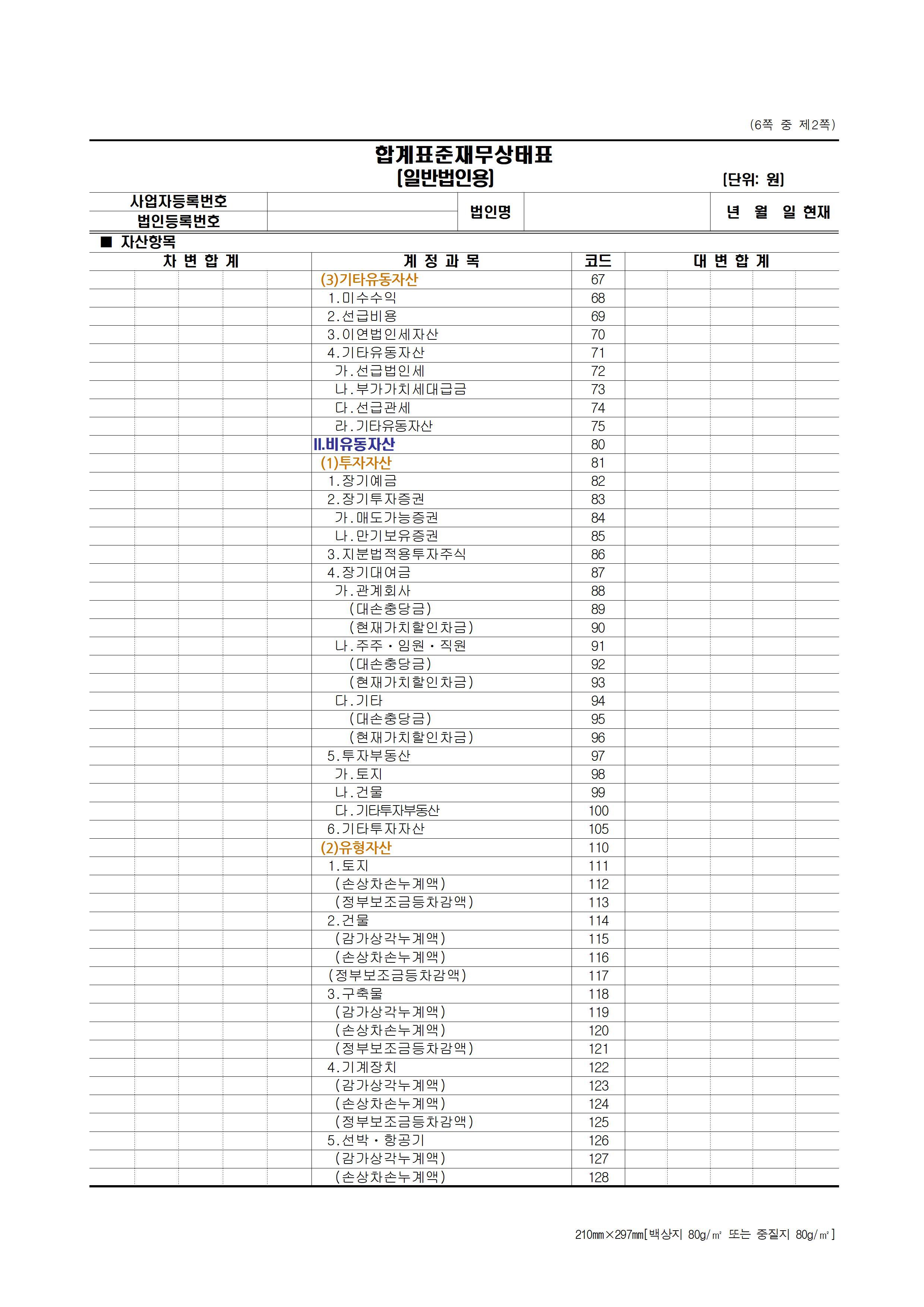 - jpg 파일 [별지 제3호의2서식] 표준재무상태표(일반법인용)¸ 합계표준재무상태표(일반법인용)¸ 표준재무상태표(금융ㆍ보험ㆍ증권업 법인용)¸ 합계표준재무상태표(금융ㆍ보험ㆍ증권업 법인용)(법인세법 시행규칙)006.jpg 다운로드