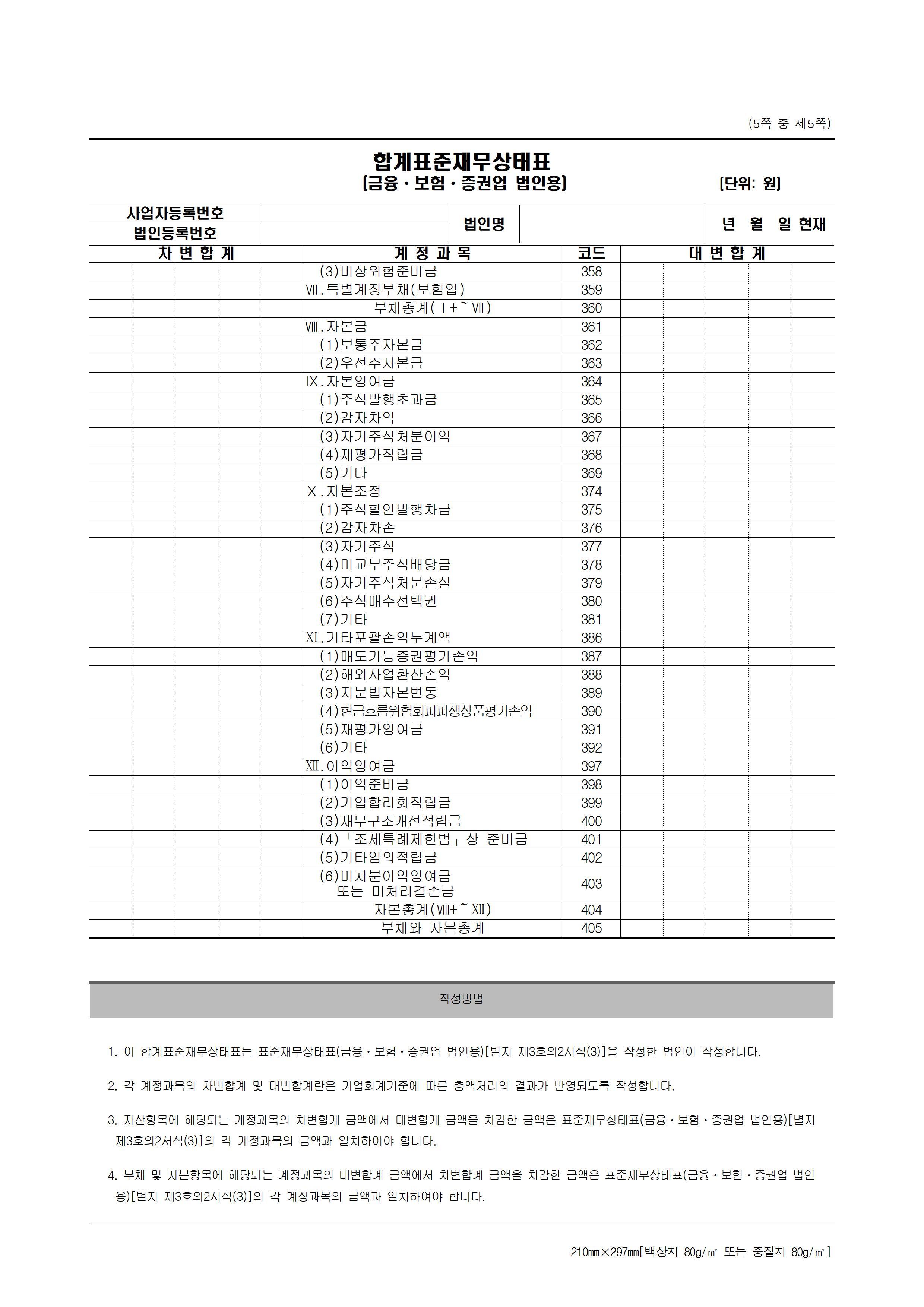 - jpg 파일 [별지 제3호의2서식] 표준재무상태표(일반법인용)¸ 합계표준재무상태표(일반법인용)¸ 표준재무상태표(금융ㆍ보험ㆍ증권업 법인용)¸ 합계표준재무상태표(금융ㆍ보험ㆍ증권업 법인용)(법인세법 시행규칙)004.jpg 다운로드
