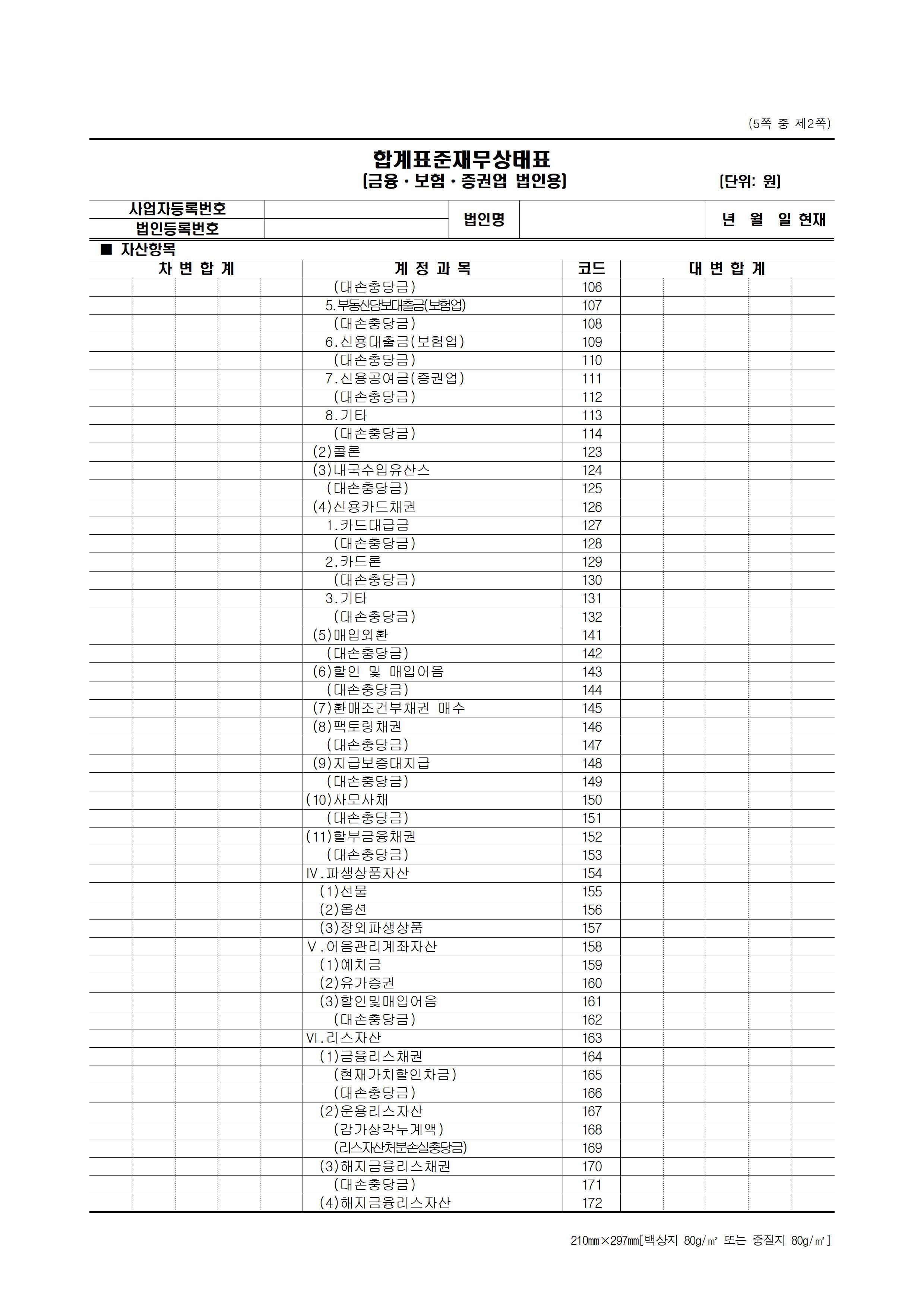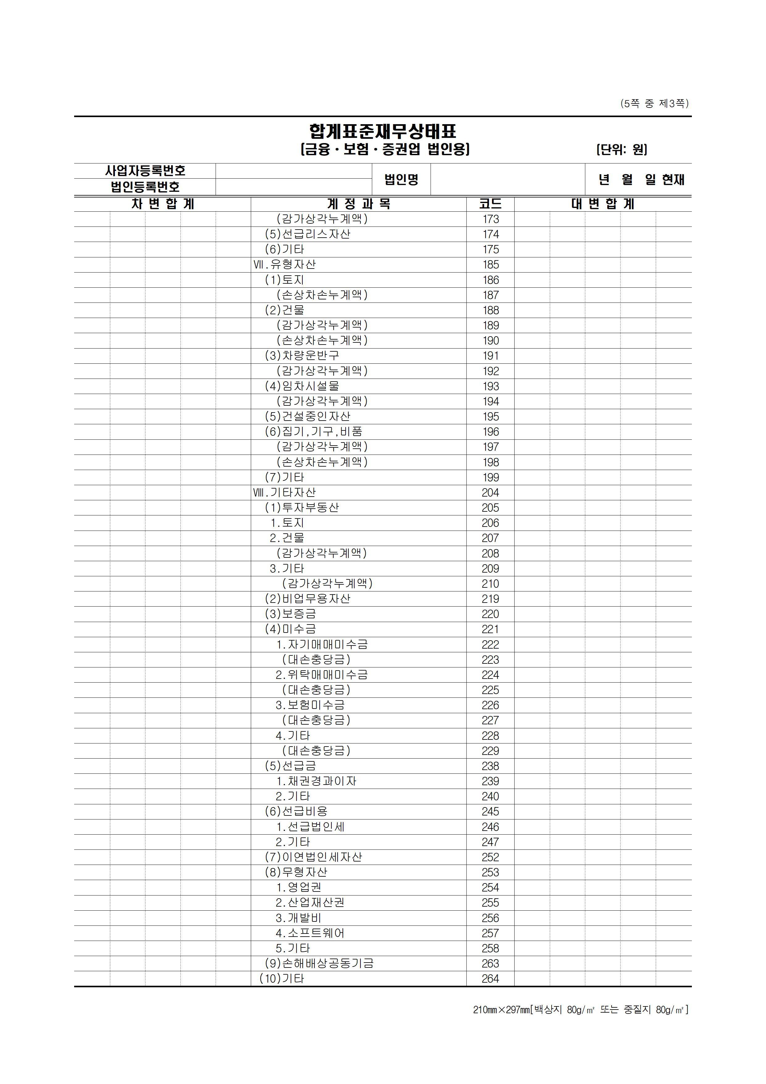- jpg 파일 [별지 제3호의2서식] 표준재무상태표(일반법인용)¸ 합계표준재무상태표(일반법인용)¸ 표준재무상태표(금융ㆍ보험ㆍ증권업 법인용)¸ 합계표준재무상태표(금융ㆍ보험ㆍ증권업 법인용)(법인세법 시행규칙)007.jpg 다운로드