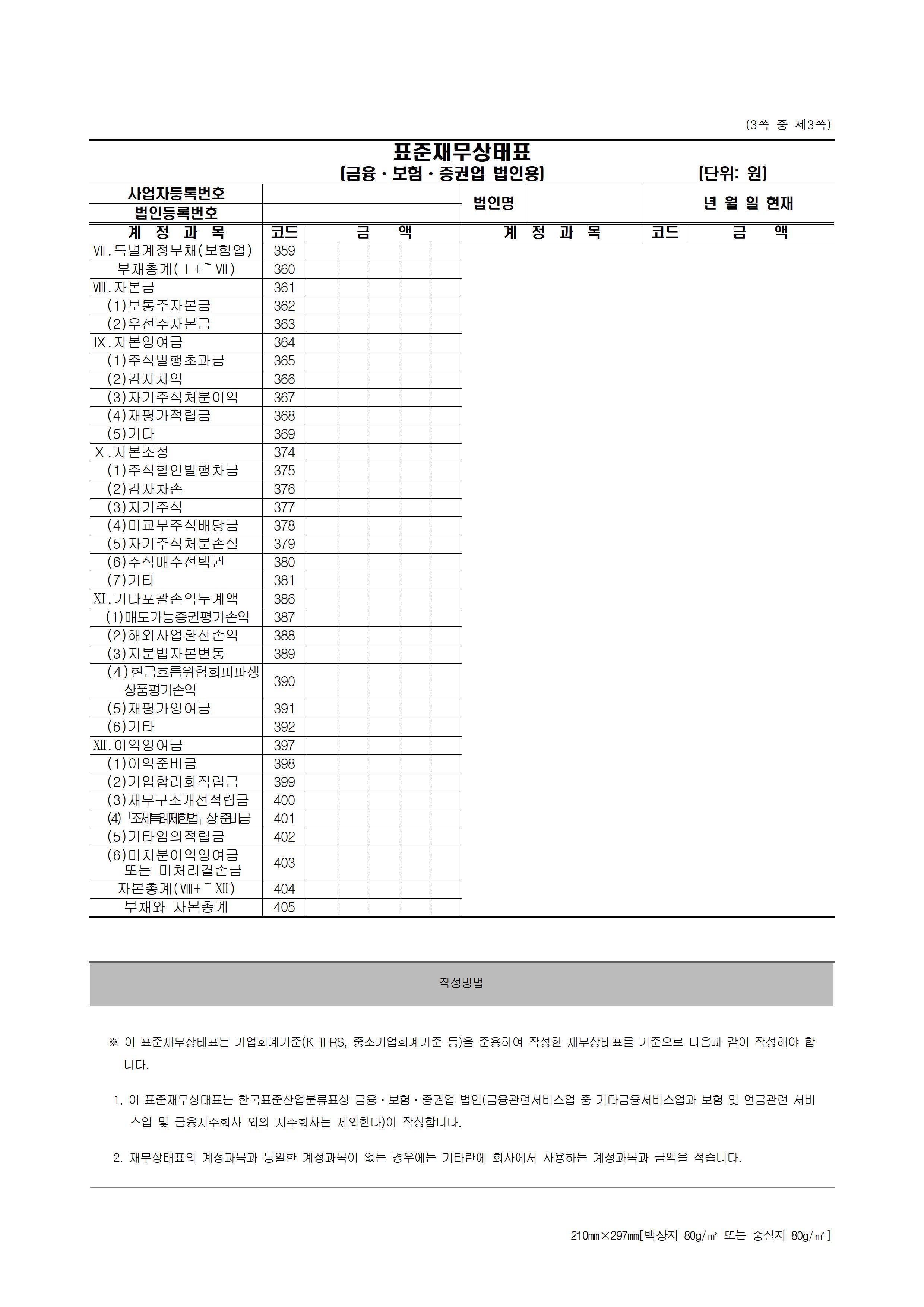 - jpg 파일 [별지 제3호의2서식] 표준재무상태표(일반법인용)¸ 합계표준재무상태표(일반법인용)¸ 표준재무상태표(금융ㆍ보험ㆍ증권업 법인용)¸ 합계표준재무상태표(금융ㆍ보험ㆍ증권업 법인용)(법인세법 시행규칙)003.jpg 다운로드