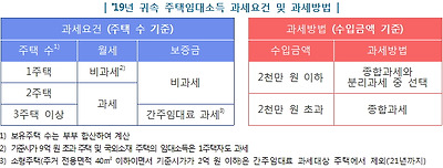 ※ 과세기준 및 과세방법에 대한 자세한 내용은 국세상담센터(국번 없이 126 ②)에 문의하거나 국세청 누리집*에 게시한 ’19년 귀속 주택임대 소득세와 주택의 간주임대료를 참고하기 바람.