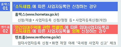 ㆍ사업자등록은 국세청의 홈택스(www.hometax.go.kr)와 국토교통부의 렌트홈(www.renthome.go.kr)을 통해 간편하게 신청할 수 있음.