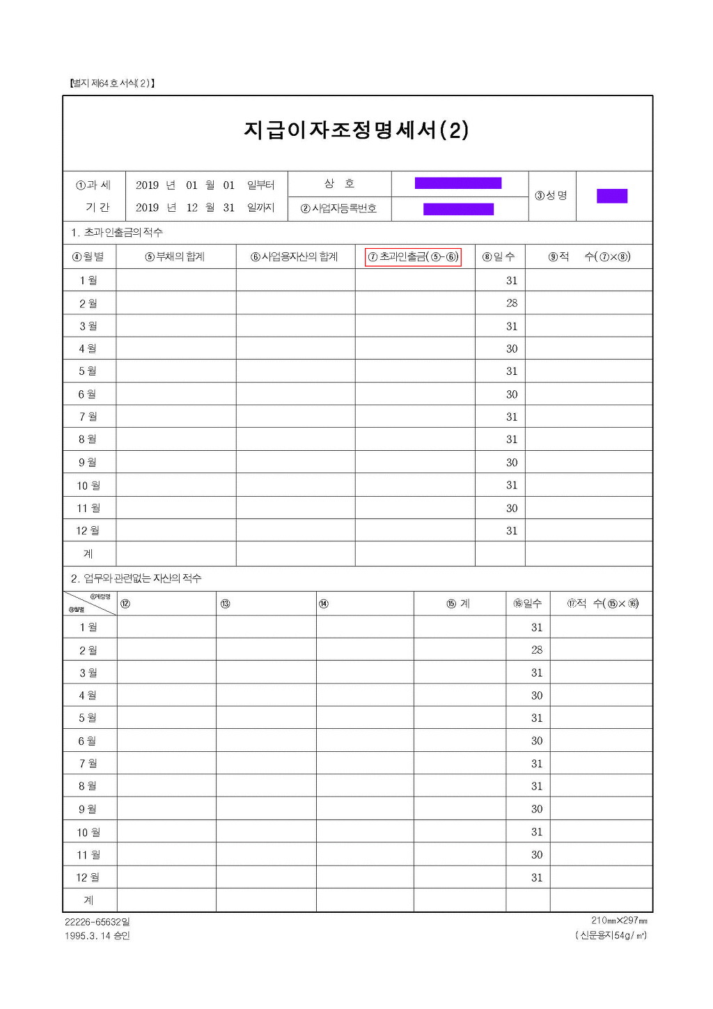 주) 적수의 계산은 매월말 현재의 초과인출금 또는 차입금의 잔액에 경과일수를 곱하여 계산할 수 있으며 초과인출금의 적수가 차입금의 적수를 초과하는 경우 그 초과하는 부분은 없는 것으로 본다.