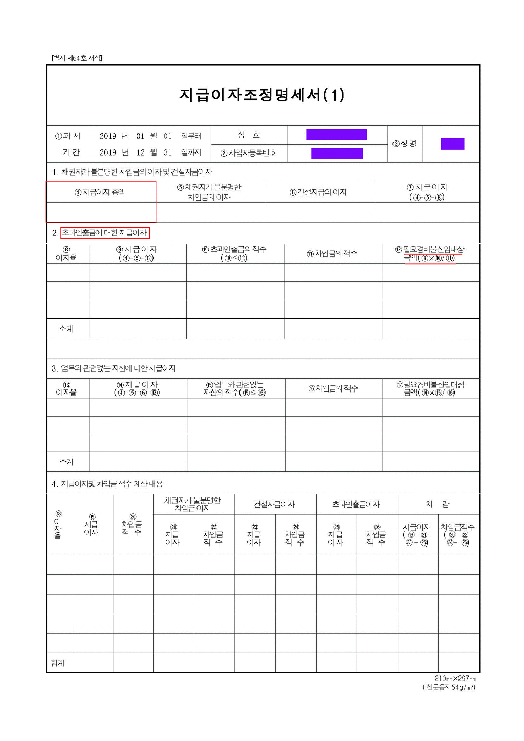 ① 초과인출금이란 부채의 합계액 중 사업용 자산의 합계액을 초과하는 금액을 말하며 해당 초과인출금에 상당하는 지급이자는 다음에 따라 계산한 금액으로 하며 가사관련경비로 필요경비 불산입한다.