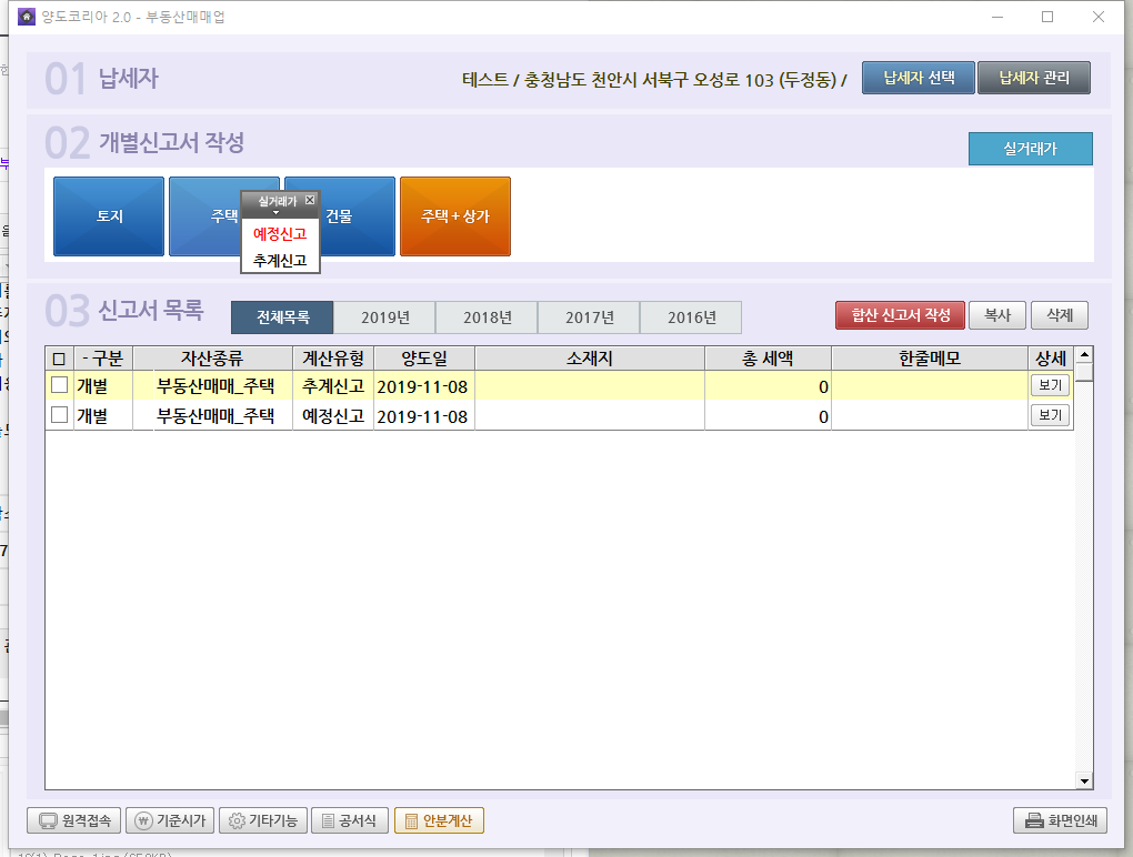 소득세신고 | . 종합소득세 확정신고 | . 부동산매매업자 매매차익 예정신고(★서식 주의★) ※일반양도소득세서식이 아님 . 종합소득세 확정신고 | . 양도소득과세표준 예정신고. 확정신고 |
