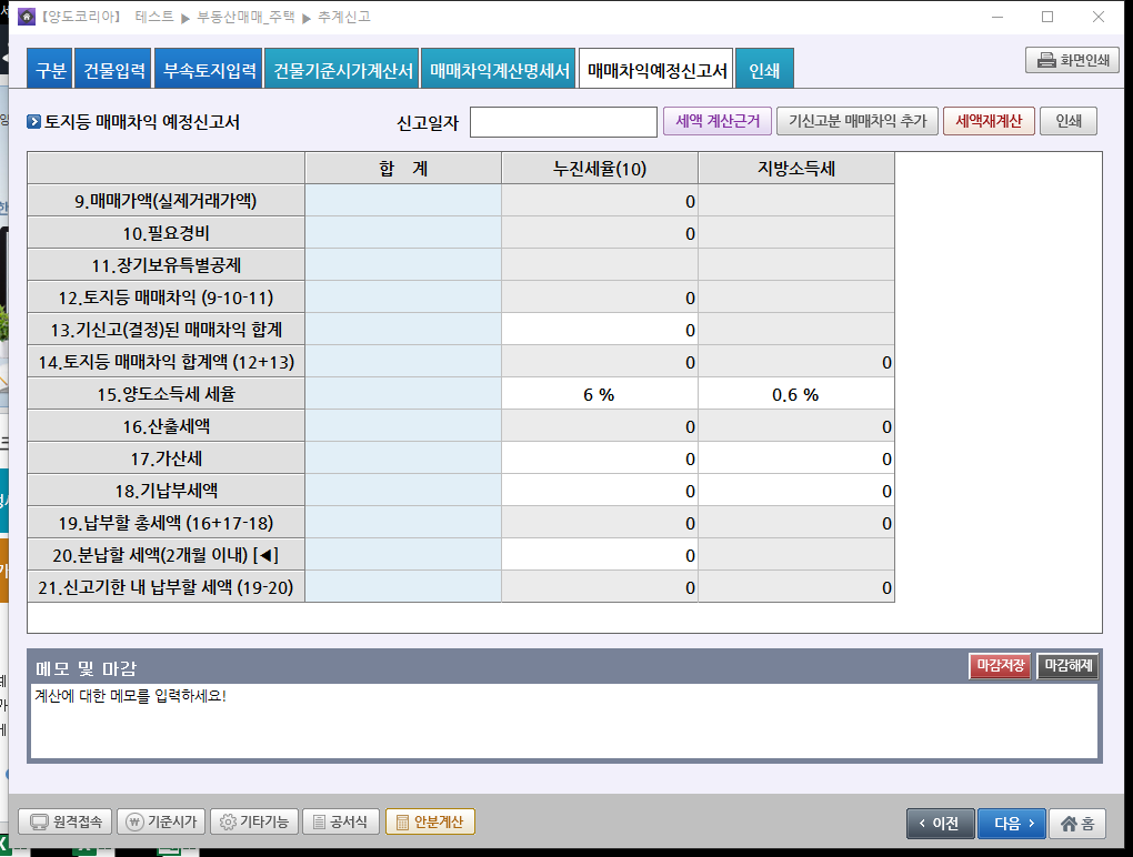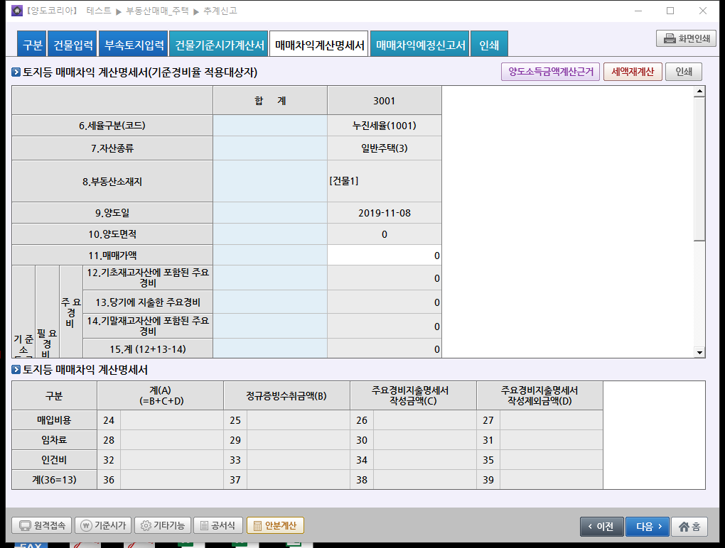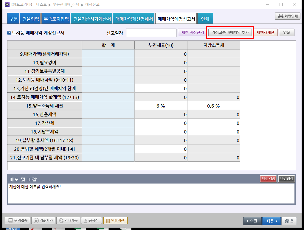 또한 토지등매매차익예정신고시 양도소득세 계산구조를 준용하여 계산하며 기존 매매차익과 합산신고 하는 것입니다.