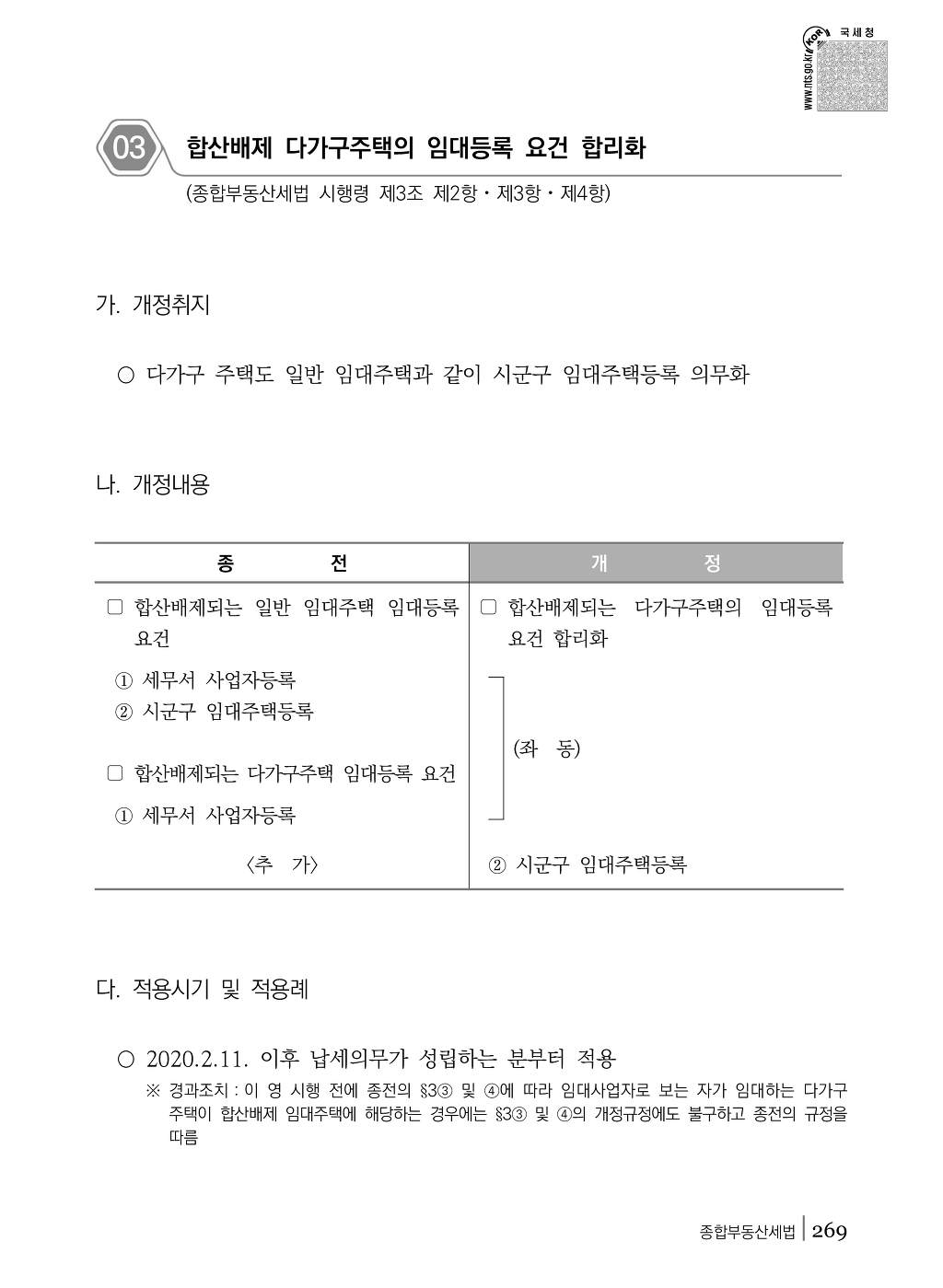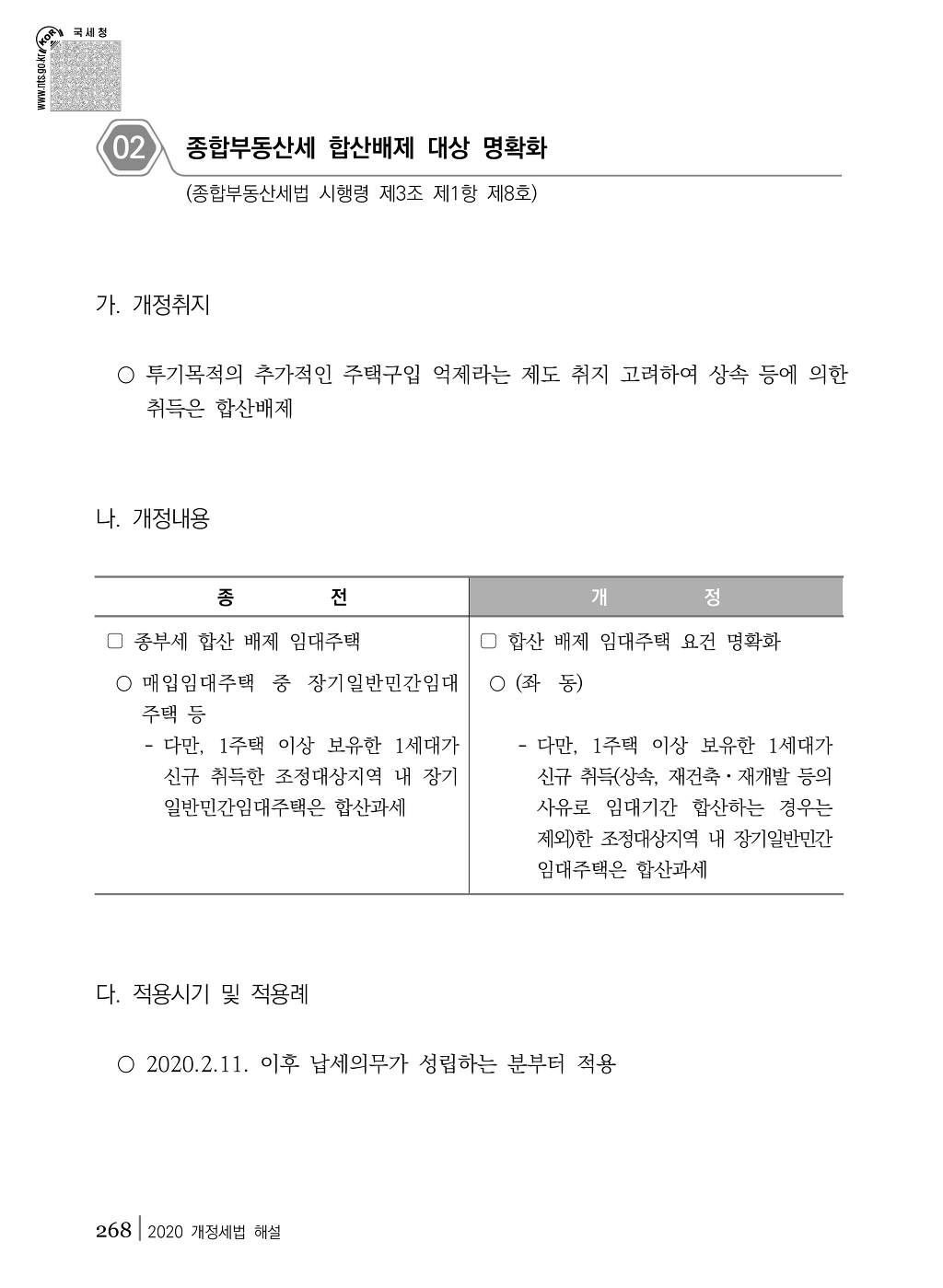 종합부동산세 합산배제 대상 명확화 (종합부동산세법 시행령 제3조 제1항 제8호) 작성자social distancing|작성시간20.04.12|조회수204 목록 댓글 0 글자크기 작게가 글자크기 크게가 다음검색 현재 게시글 추가 기능 열기 북마크 공유하기 신고 센터로 신고 댓글 댓글 0 댓글쓰기 답글쓰기 댓글 리스트
