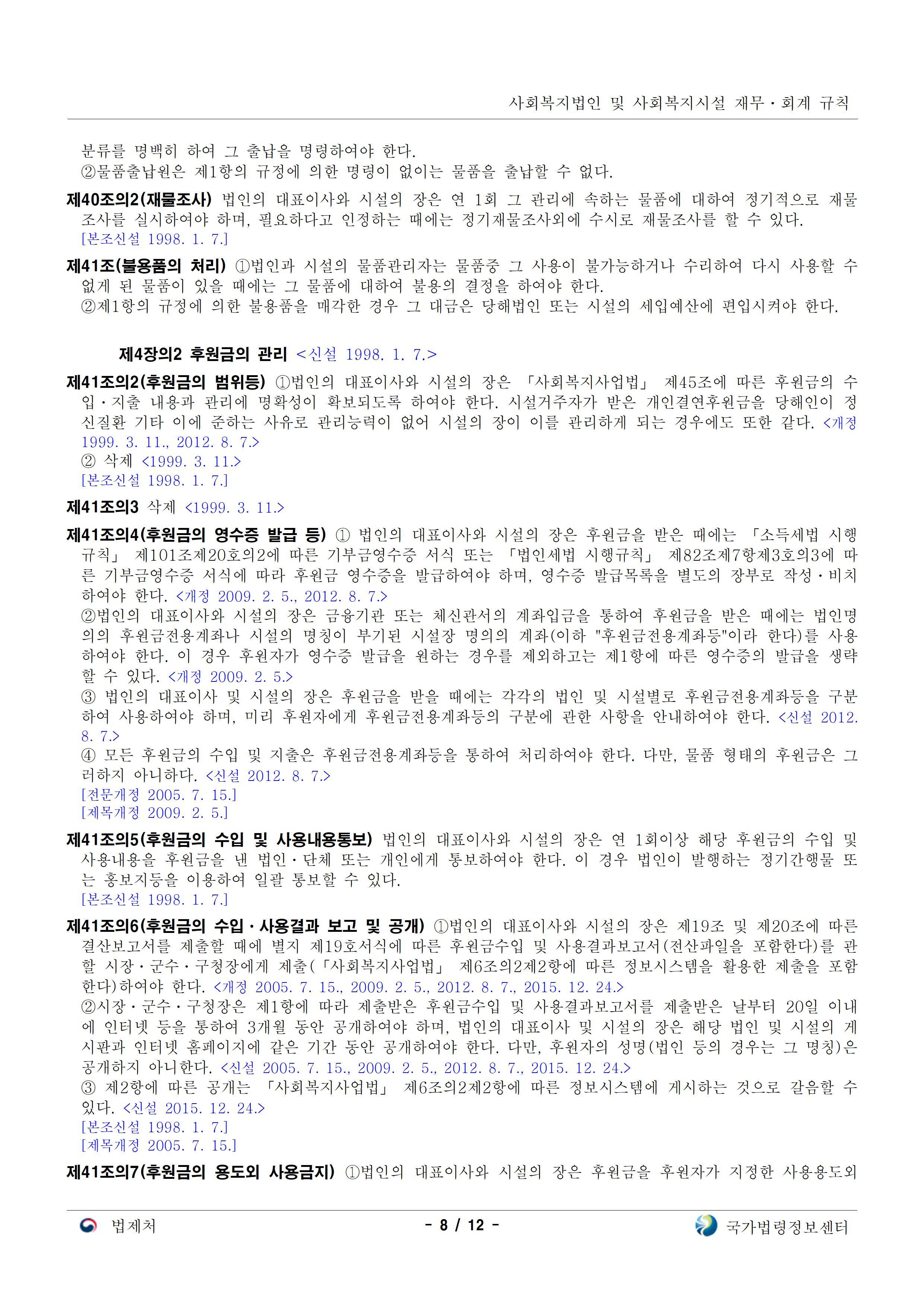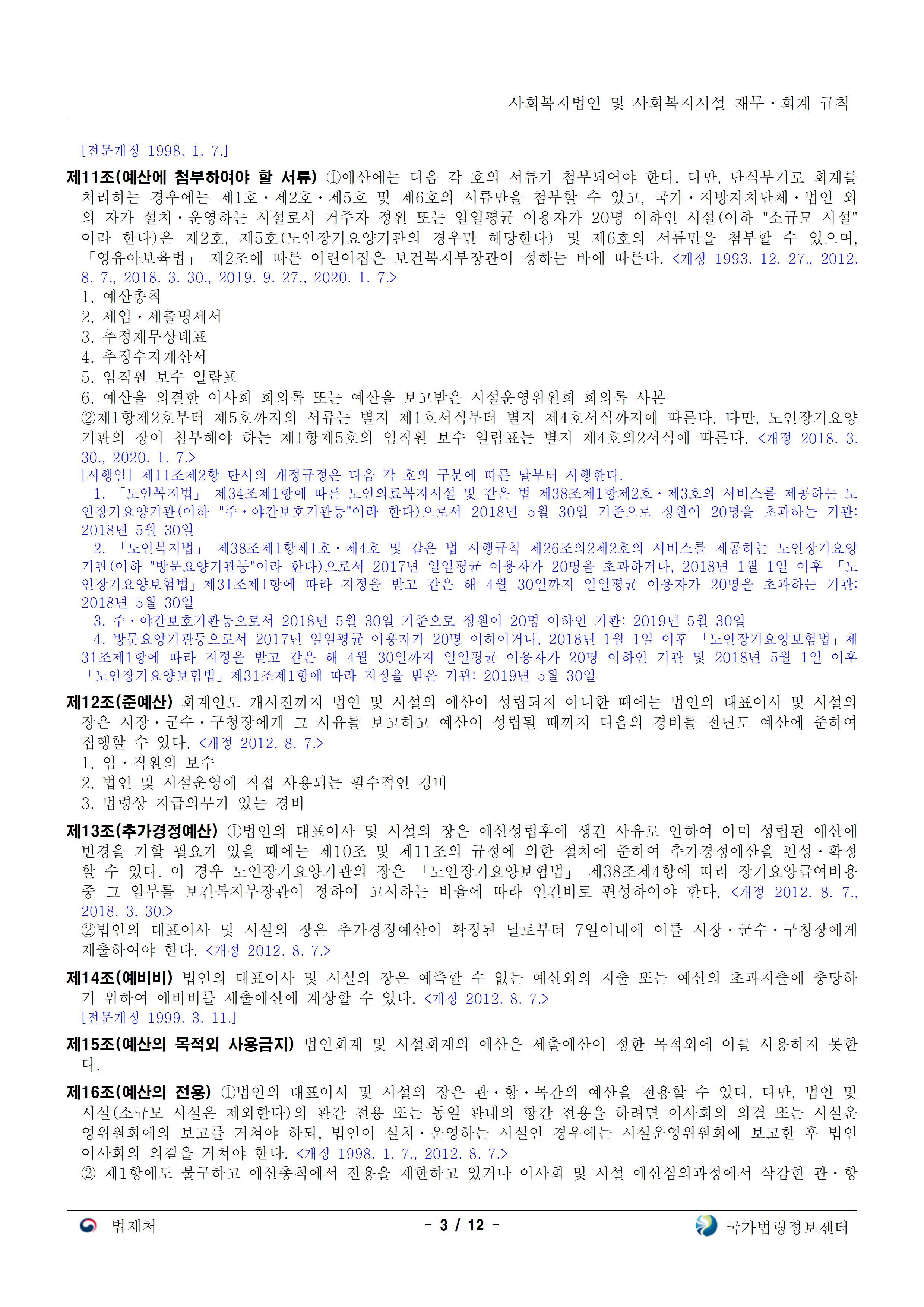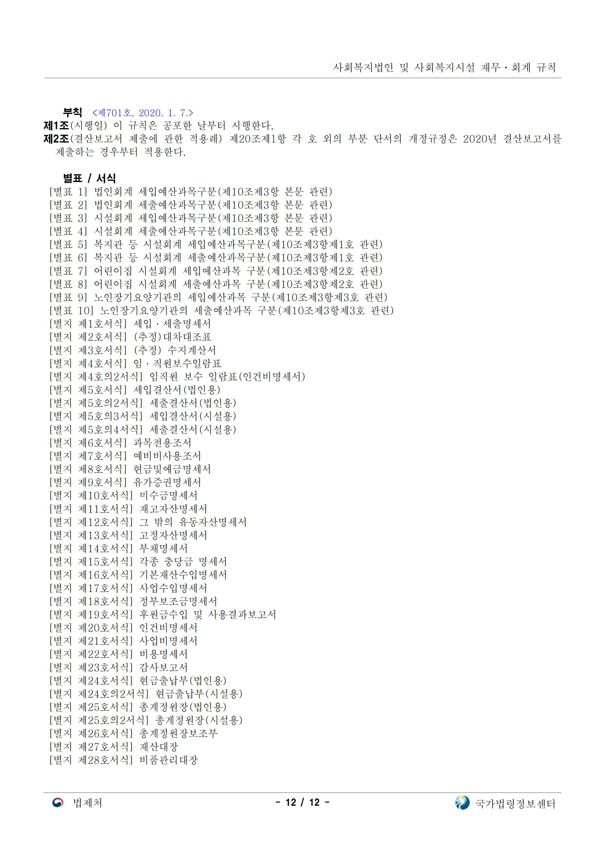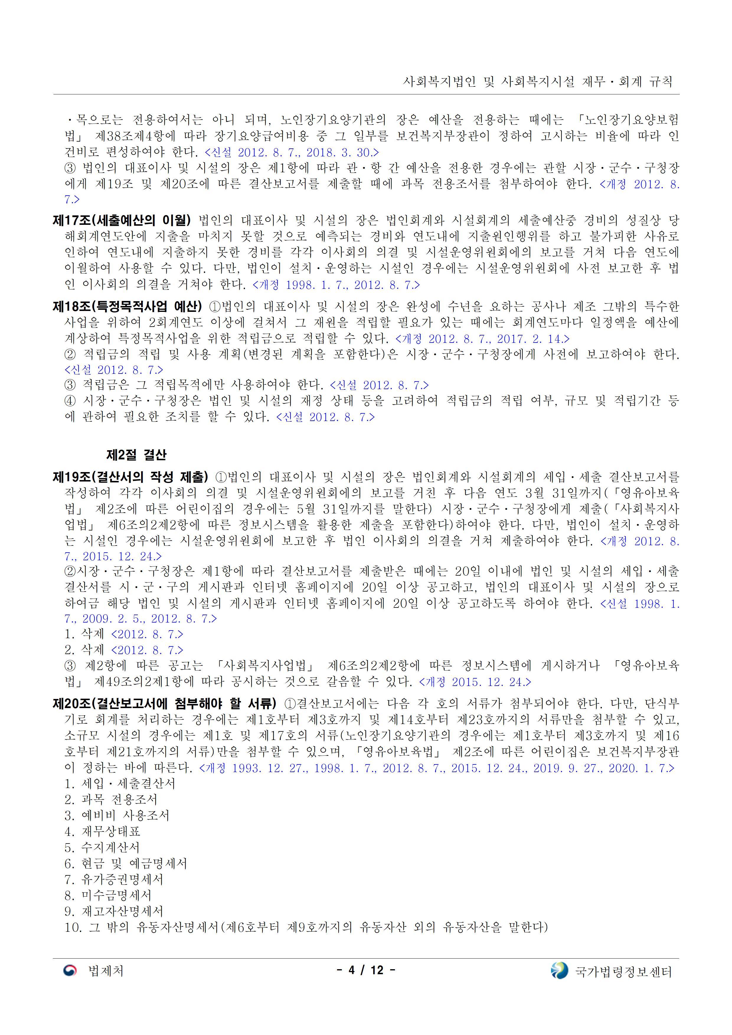 2020. 1. 7 시행 사회복지법인 및 사회복지시설 재무 · 회계 규칙 작성자주황규|작성시간21.05.01|조회수942 목록 댓글 0 글자크기 작게가 글자크기 크게가 사회복지법인 및 사회복지시설 재무ㆍ회계 규칙(00701).hwp64.00KB사회복지법인 및 사회복지시설 재무ㆍ회계 규칙(00701).pdf219.75KB2021년_사회복지법인_관리안내.pdf6.60MB2021년 사회복지시설 관리안내.pdf13.76MB 첨부파일첨부된 파일이 17개 있습니다. jpg 파일 주황규.jpg 다운로드 jpg 파일 사회복지법인 및 사회복지시설 재무ㆍ회계 규칙(00701)001.jpg 다운로드 jpg 파일 사회복지법인 및 사회복지시설 재무ㆍ회계 규칙(00701)002.jpg 다운로드 jpg 파일 사회복지법인 및 사회복지시설 재무ㆍ회계 규칙(00701)003.jpg 다운로드 jpg 파일 사회복지법인 및 사회복지시설 재무ㆍ회계 규칙(00701)005.jpg 다운로드 jpg 파일 사회복지법인 및 사회복지시설 재무ㆍ회계 규칙(00701)004.jpg 다운로드 jpg 파일 사회복지법인 및 사회복지시설 재무ㆍ회계 규칙(00701)007.jpg 다운로드 jpg 파일 사회복지법인 및 사회복지시설 재무ㆍ회계 규칙(00701)008.jpg 다운로드 jpg 파일 사회복지법인 및 사회복지시설 재무ㆍ회계 규칙(00701)006.jpg 다운로드 jpg 파일 사회복지법인 및 사회복지시설 재무ㆍ회계 규칙(00701)009.jpg 다운로드 jpg 파일 사회복지법인 및 사회복지시설 재무ㆍ회계 규칙(00701)010.jpg 다운로드 jpg 파일 사회복지법인 및 사회복지시설 재무ㆍ회계 규칙(00701)011.jpg 다운로드 jpg 파일 사회복지법인 및 사회복지시설 재무ㆍ회계 규칙(00701)012.jpg 다운로드 hwp 파일 사회복지법인 및 사회복지시설 재무ㆍ회계 규칙(00701).hwp 다운로드 pdf 파일 사회복지법인 및 사회복지시설 재무ㆍ회계 규칙(00701).pdf 다운로드 pdf 파일 2021년 사회복지시설 관리안내.pdf 다운로드 pdf 파일 2021년_사회복지법인_관리안내.pdf 다운로드 다음검색 현재 게시글 추가 기능 열기 북마크 신고 센터로 신고 댓글 댓글 0 댓글쓰기 답글쓰기 댓글 리스트