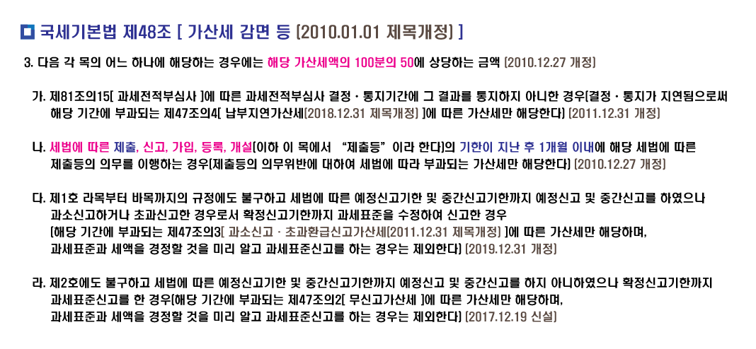 라.제출기한이 지난후 3개월 이내에 제출하는 경우에는 50/100의 가산세를 감면한 금액을 적습니다.