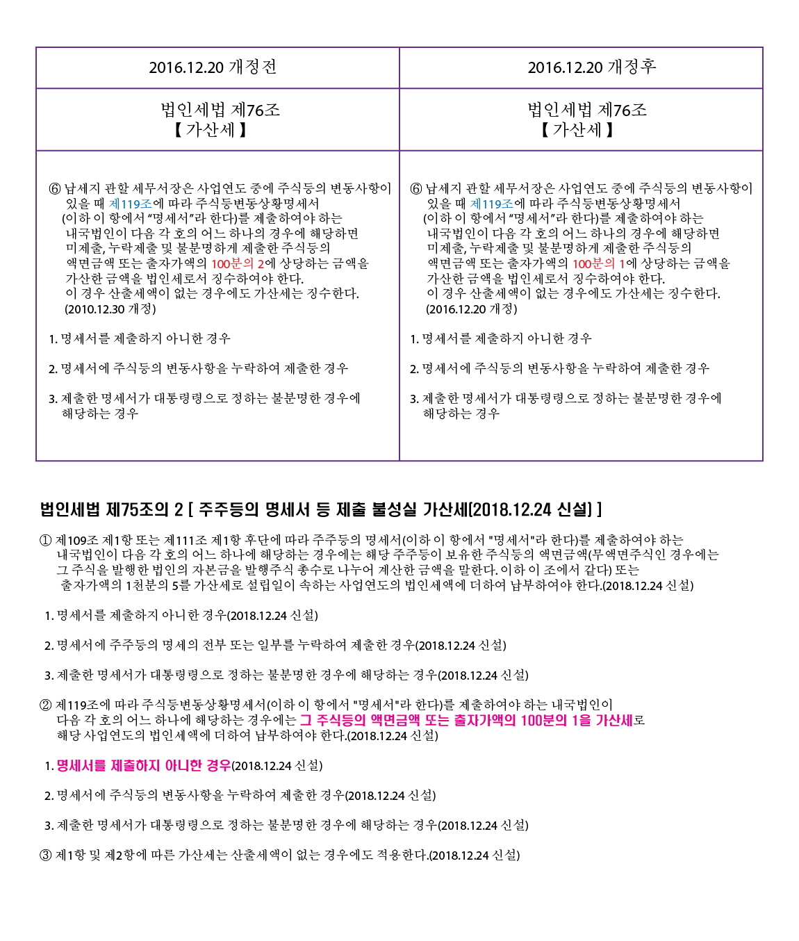 법인세법 제75조의 2 [ 주주등의 명세서 등 제출 불성실 가산세(2018.12.24 신설) ]