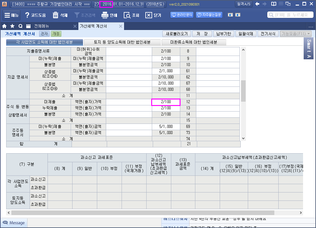 2. 명세서에 주주등의 명세의 전부 또는 일부를 누락하여 제출한 경우(2018.12.24 신설)