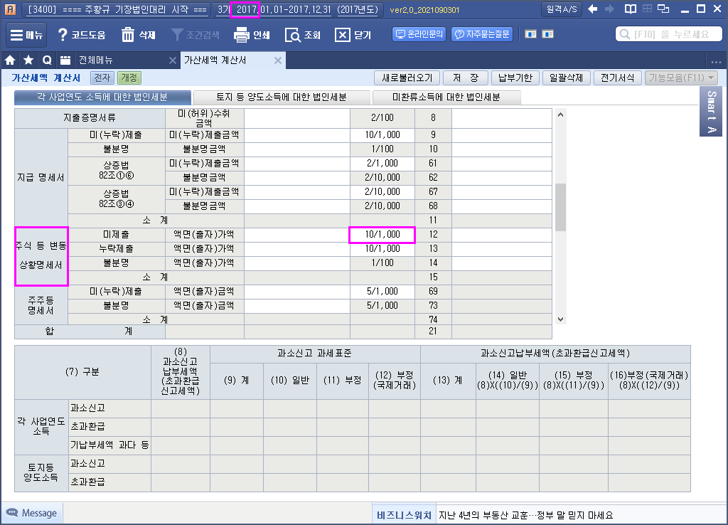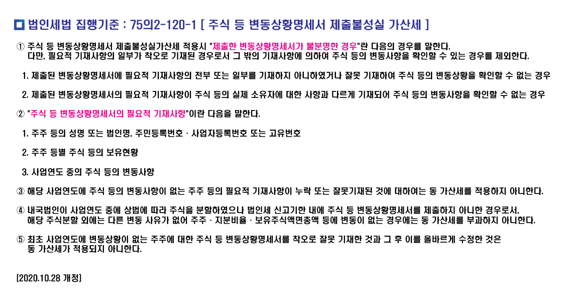 주식 등 변동 상황명세서 가산세 법인세법 제75조의 7 [ 지급명세서 등 제출 불성실 가산세(2021.03.16 제목개정) ]