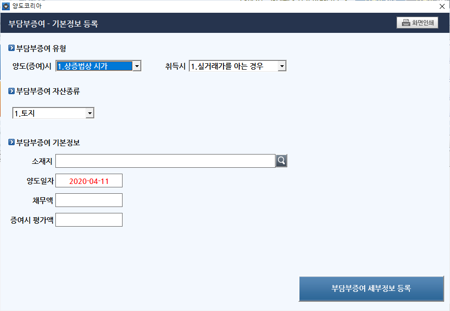증여자의 채무를 수증자가 인수하는 경우 채무액은 다음 계산식에 따라 계산 한다.(2017.02.03. 개정)