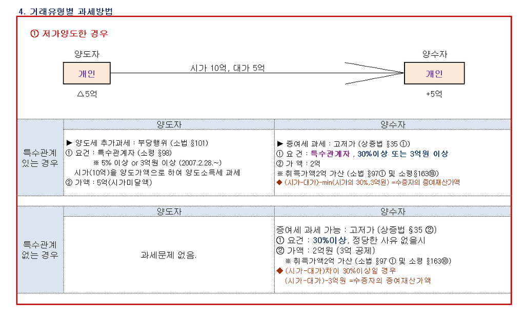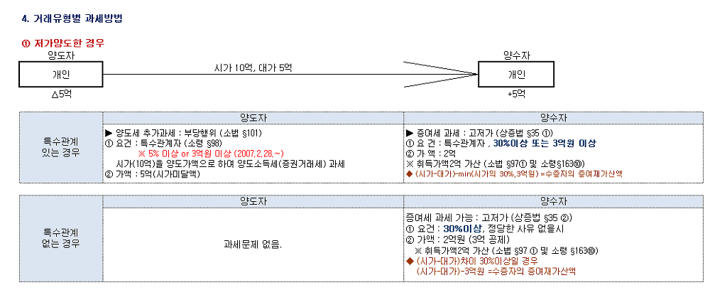 과세요건 : (대가-시가)의 차액이 시가의 30% 이상 또는 그 차액이 3억원 이상