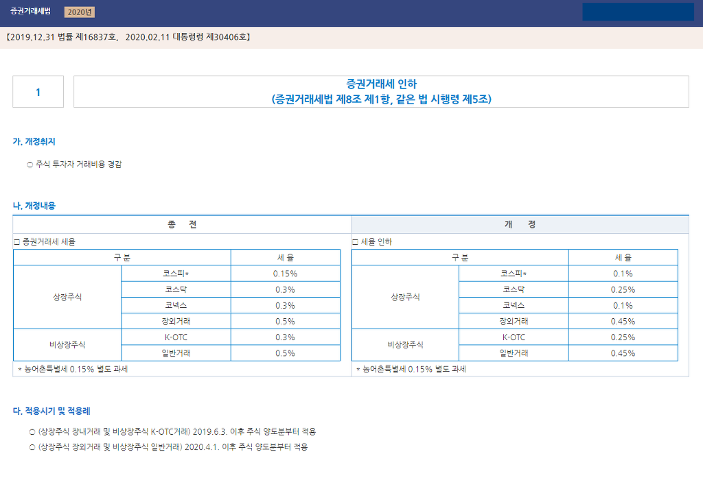 ① 증권거래세의 세율은 1만분의 45로 정한다.(2019.12.31 개정)