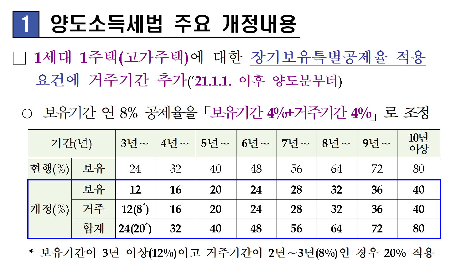 0 - 부동산 3법 (양도소득세) 1 - 분양권 2 - 세율 3 - 중과세율 4 - 장기보유특별공제 작성자주황규|작성시간20.12.27|조회수318 목록 댓글 0 글자크기 작게가 글자크기 크게가 양도소득세 세율 (2021.01175.14KB양도소득세 세율 (2021.01173.37KB국세청 - 부동산3법 등 주요 개정내용 및 100문100답으로 풀어보는 주택세금 2020년 9월.pdf669.41KB국세청 - 부동산3법 등 주요 개정내용 및 100문100답으로 풀어보는 주택세금 2020년 9월.hwp210.00KB2021년 양도소득세 세율 소득세법 제104조 [ 양도소득세의 세율 ].hwp48.00KBhttps://www.nts.go.kr/nts/cm/cntnts/cntntsView.do?mi=6493&cntntsId=7926 양도소득세 세율 (2021.01168.73KB국세청www.nts.go.kr금융세제 - (상세본) 20년 세법개정 후속 시행령 개정안 - 2021년 1월 6일(수).pdf410.77KB금융세제 - (상세본) 20년 세법개정 후속 시행령 개정안 - 2021년 1월 6일(수).hwp75.00KB 첨부파일첨부된 파일이 34개 있습니다. jpg 파일 주황규.jpg 다운로드 jpg 파일 부동산3법.jpg 다운로드 jpg 파일 분양권.jpg 다운로드 jpg 파일 중과세율.jpg 다운로드 jpg 파일 세율인상-관련.jpg 다운로드 jpg 파일 장기보유특별공제.jpg 다운로드 png 파일 임대주택 공동명의.png 다운로드 hwp 파일 국세청 - 부동산3법 등 주요 개정내용 및 100문100답으로 풀어보는 주택세금 2020년 9월.hwp 다운로드 pdf 파일 국세청 - 부동산3법 등 주요 개정내용 및 100문100답으로 풀어보는 주택세금 2020년 9월.pdf 다운로드 png 파일 분양권.png 다운로드 png 파일 고가주택 장기보유특별공제.png 다운로드 hwp 파일 2021년 양도소득세 세율 소득세법 제104조 [ 양도소득세의 세율 ].hwp 다운로드 jpg 파일 분양권.jpg 다운로드 png 파일 분양권.png 다운로드 jpg 파일 (요약본) 20년 세법개정 후속 시행령 개정안015.jpg 다운로드 jpg 파일 부동산 등 양도소득세제 주택 수 와 분양권 (상세본) 20년 세법개정 후속 시행령 개정안003.jpg 다운로드 jpg 파일 부동산 등 양도소득세제 주택 수 와 분양권 (상세본) 20년 세법개정 후속 시행령 개정안004.jpg 다운로드 jpg 파일 부동산 등 양도소득세제 주택 수 와 분양권 (상세본) 20년 세법개정 후속 시행령 개정안006.jpg 다운로드 jpg 파일 부동산 등 양도소득세제 주택 수 와 분양권 (상세본) 20년 세법개정 후속 시행령 개정안007.jpg 다운로드 jpg 파일 부동산 등 양도소득세제 주택 수 와 분양권 (상세본) 20년 세법개정 후속 시행령 개정안005.jpg 다운로드 jpg 파일 부동산 등 양도소득세제 주택 수 와 분양권 (상세본) 20년 세법개정 후속 시행령 개정안009.jpg 다운로드 jpg 파일 부동산 등 양도소득세제 주택 수 와 분양권 (상세본) 20년 세법개정 후속 시행령 개정안008.jpg 다운로드 jpg 파일 부동산 등 양도소득세제 주택 수 와 분양권 (상세본) 20년 세법개정 후속 시행령 개정안010.jpg 다운로드 jpg 파일 부동산 등 양도소득세제 주택 수 와 분양권 (상세본) 20년 세법개정 후속 시행령 개정안011.jpg 다운로드 jpg 파일 부동산 등 양도소득세제 주택 수 와 분양권 (상세본) 20년 세법개정 후속 시행령 개정안012.jpg 다운로드 jpg 파일 부동산 등 양도소득세제 주택 수 와 분양권 (상세본) 20년 세법개정 후속 시행령 개정안013.jpg 다운로드 jpg 파일 부동산 등 양도소득세제 주택 수 와 분양권 (상세본) 20년 세법개정 후속 시행령 개정안015.jpg 다운로드 jpg 파일 부동산 등 양도소득세제 주택 수 와 분양권 (상세본) 20년 세법개정 후속 시행령 개정안014.jpg 다운로드 jpg 파일 부동산 등 양도소득세제 주택 수 와 분양권 (상세본) 20년 세법개정 후속 시행령 개정안016.jpg 다운로드 hwp 파일 금융세제 - (상세본) 20년 세법개정 후속 시행령 개정안 - 2021년 1월 6일(수).hwp 다운로드 pdf 파일 금융세제 - (상세본) 20년 세법개정 후속 시행령 개정안 - 2021년 1월 6일(수).pdf 다운로드 pdf 파일 양도소득세 세율 (2021.01.01.이후) 선우회계법인 주황규.pdf 다운로드 xlsx 파일 양도소득세 세율 (2021.01.01.이후) 선우회계법인 주황규.xlsx 다운로드 xlsx 파일 양도소득세 세율 (2021.01.01.이후) 선우회계법인 주황규.xlsx 다운로드 다음검색 현재 게시글 추가 기능 열기 북마크 공유하기 신고 센터로 신고 댓글 댓글 0 댓글쓰기 답글쓰기 댓글 리스트