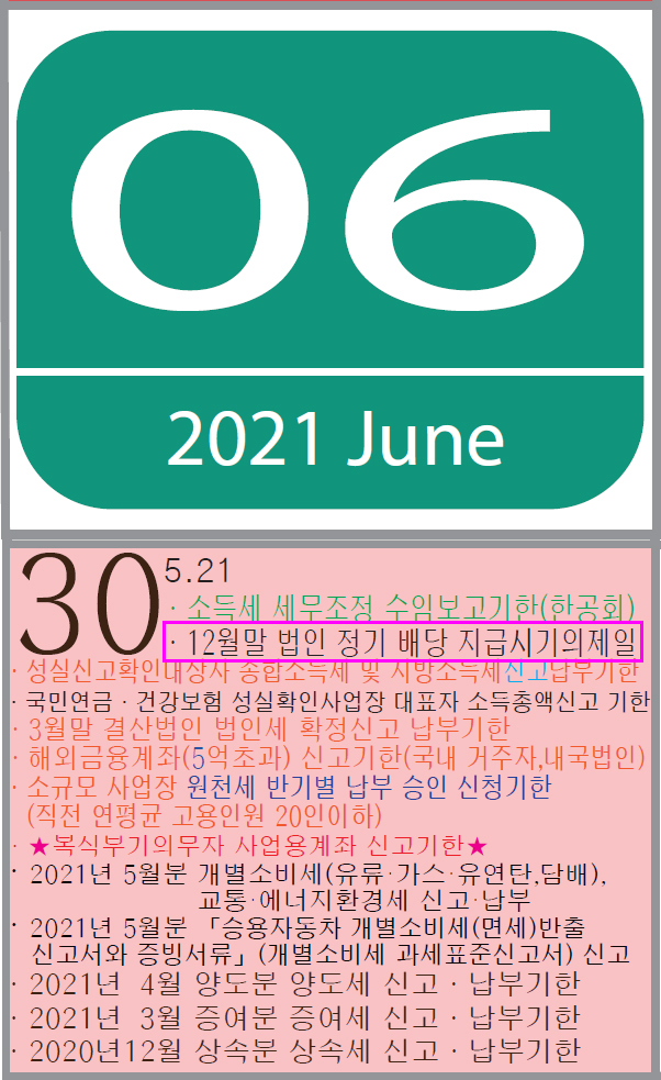 6.30. : 12월말 법인(3월 주총) 정기 배당 지급시기 의제일
