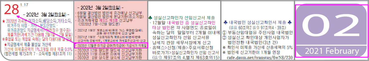 2.28. : 12월 귀속분 미지급 급여 (퇴직급여) , 연말정산 사업소득 지급시기 의제일
