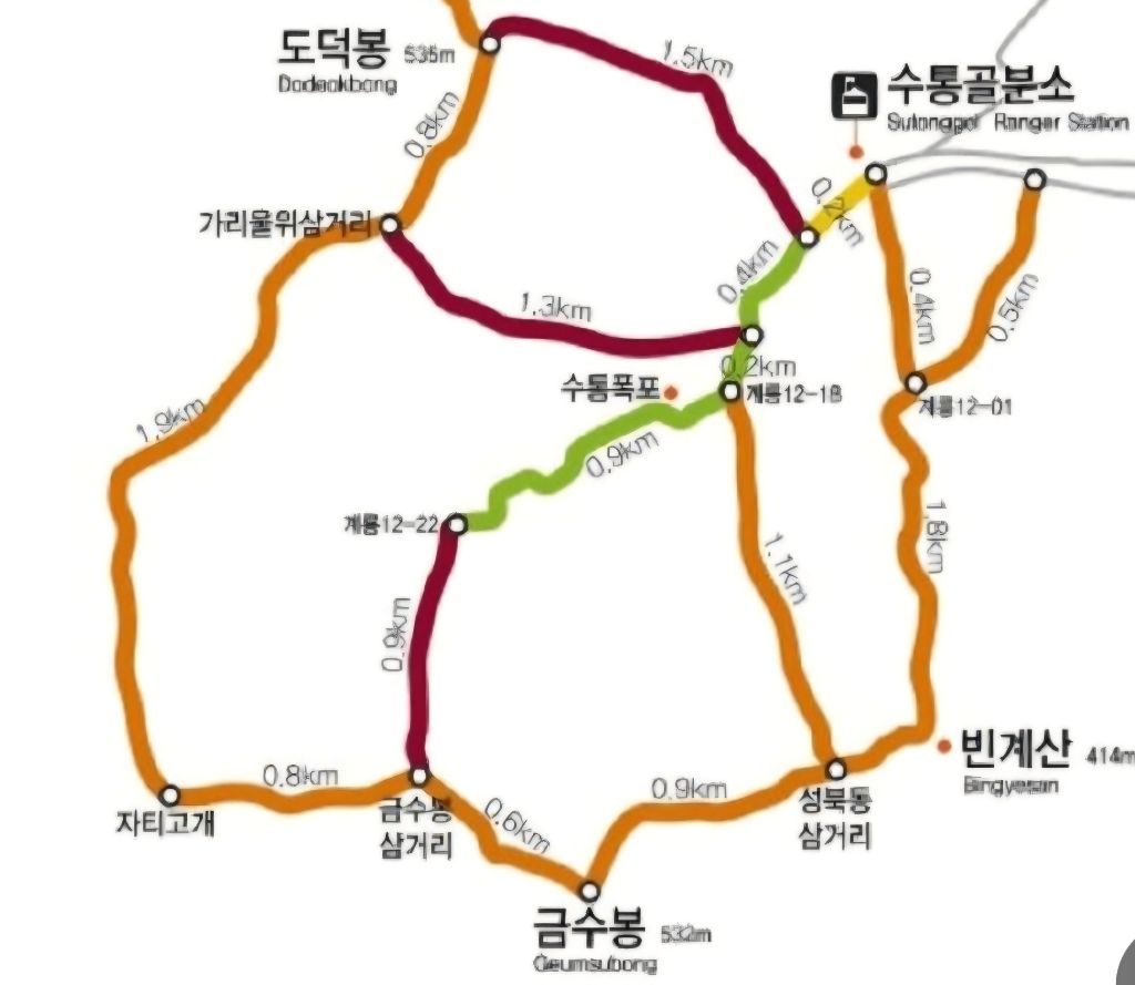 코스 : 수통골(첨부지도참고)