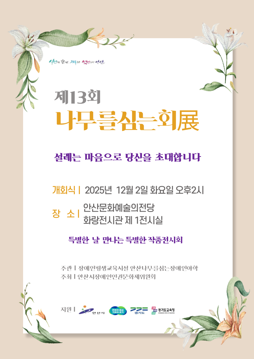 제13회 나무를심는회展 작성자나무|작성시간25.11.14|조회수27 목록 댓글 0 글자크기 작게가 글자크기 크게가 다음검색 현재 게시글 추가 기능 열기 북마크 공유하기 신고 센터로 신고 댓글 댓글 0 댓글쓰기 답글쓰기 댓글 리스트