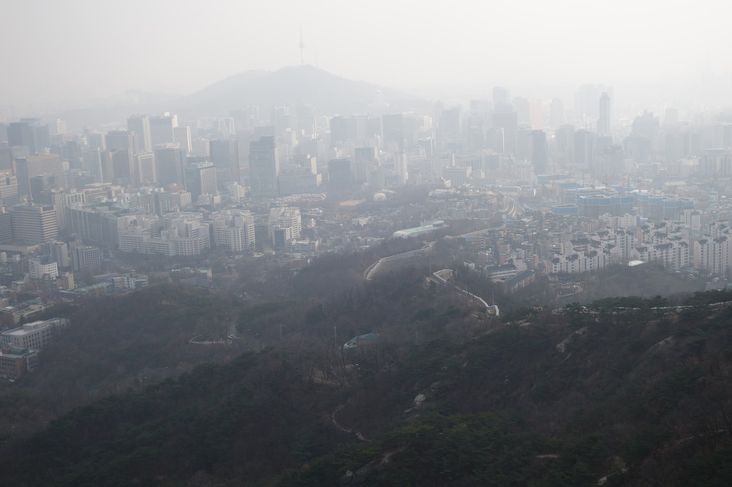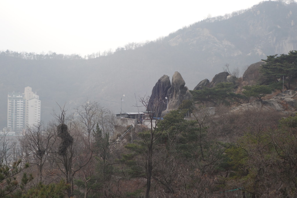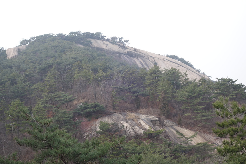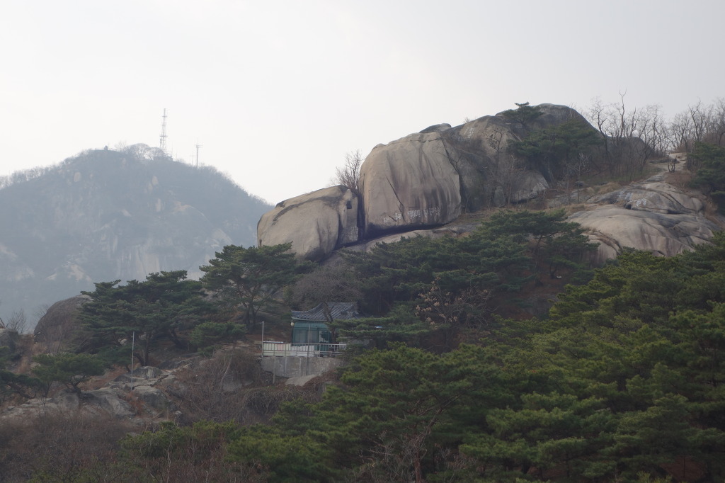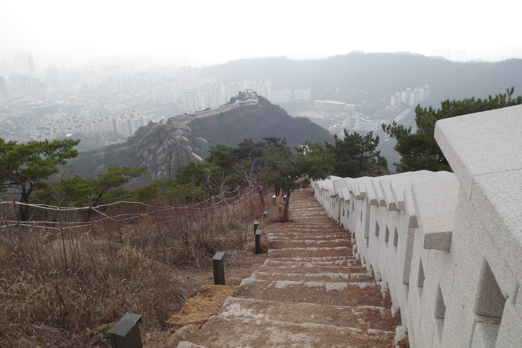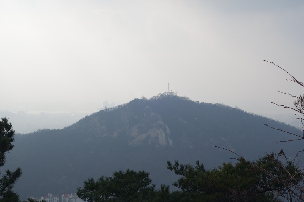 내려 갈길을 한번더 잡아보고. 멀리 희미하게 남산이 보인다