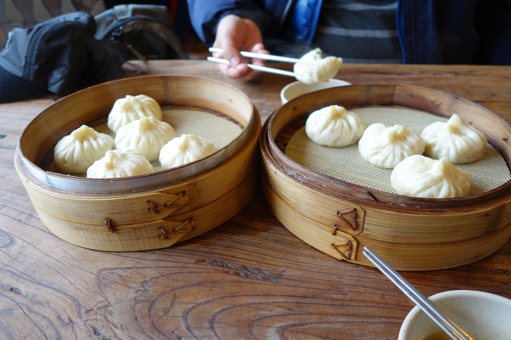 중국인이 운영하는 만두가게(천진포자)인데 주문을 받고 만두피를 밀기 시작한다.