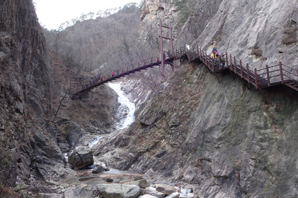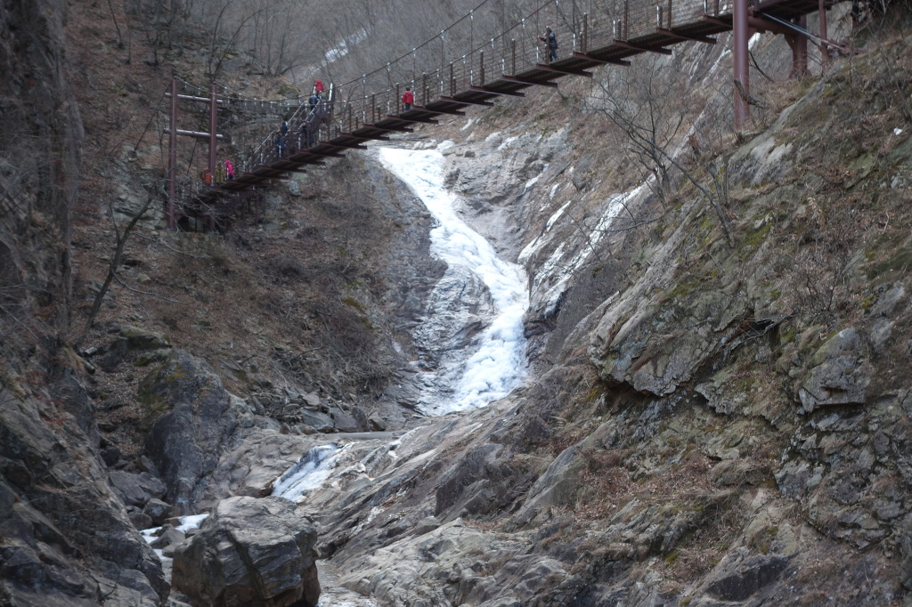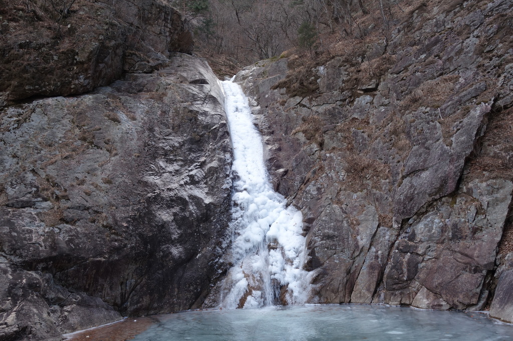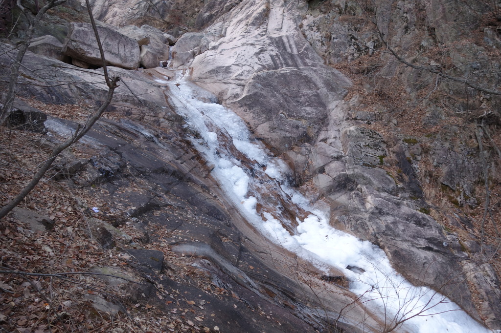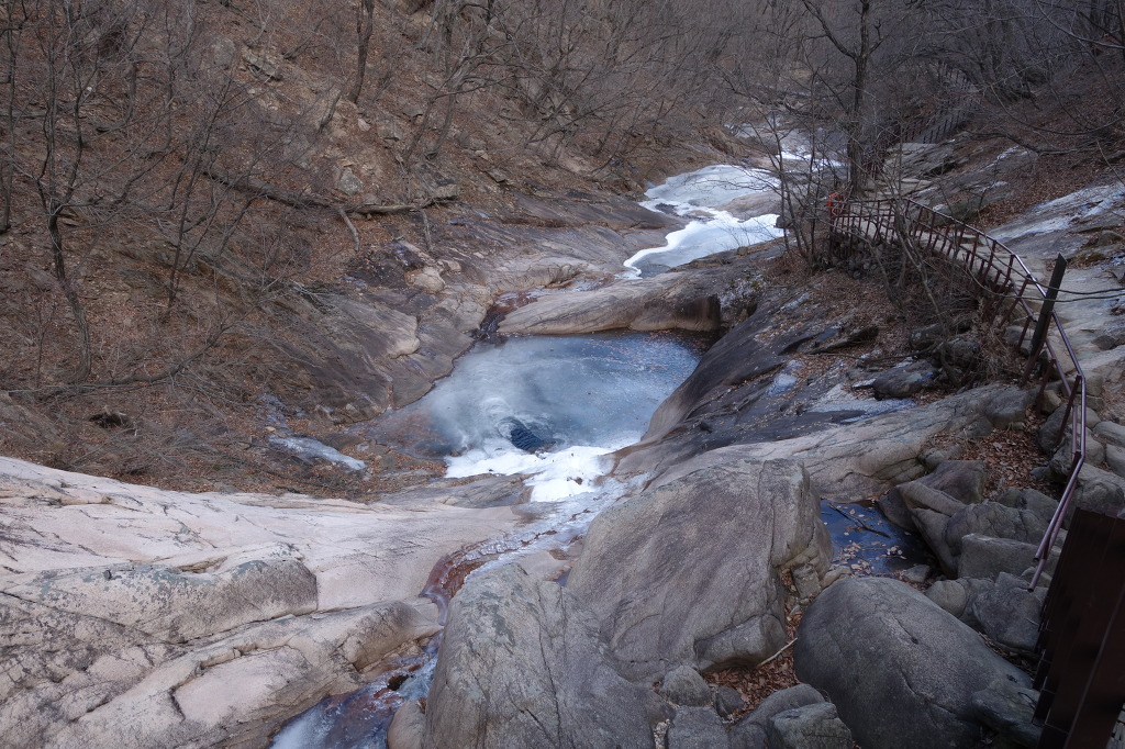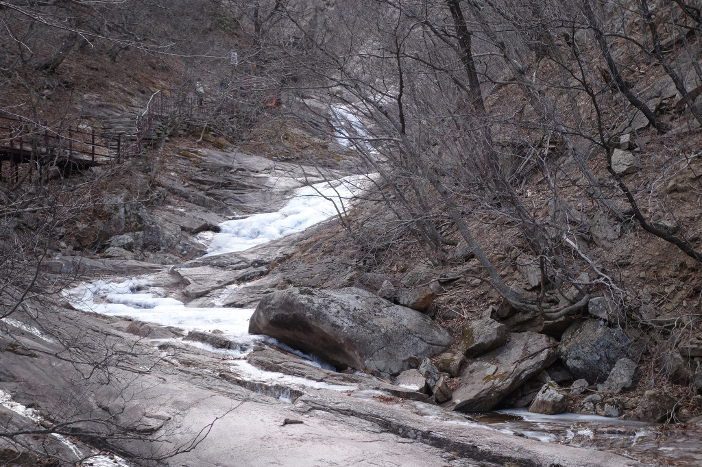 날씨가 따뜻해 계곡이 완전히 얼지는 않고 물이 흐른다.