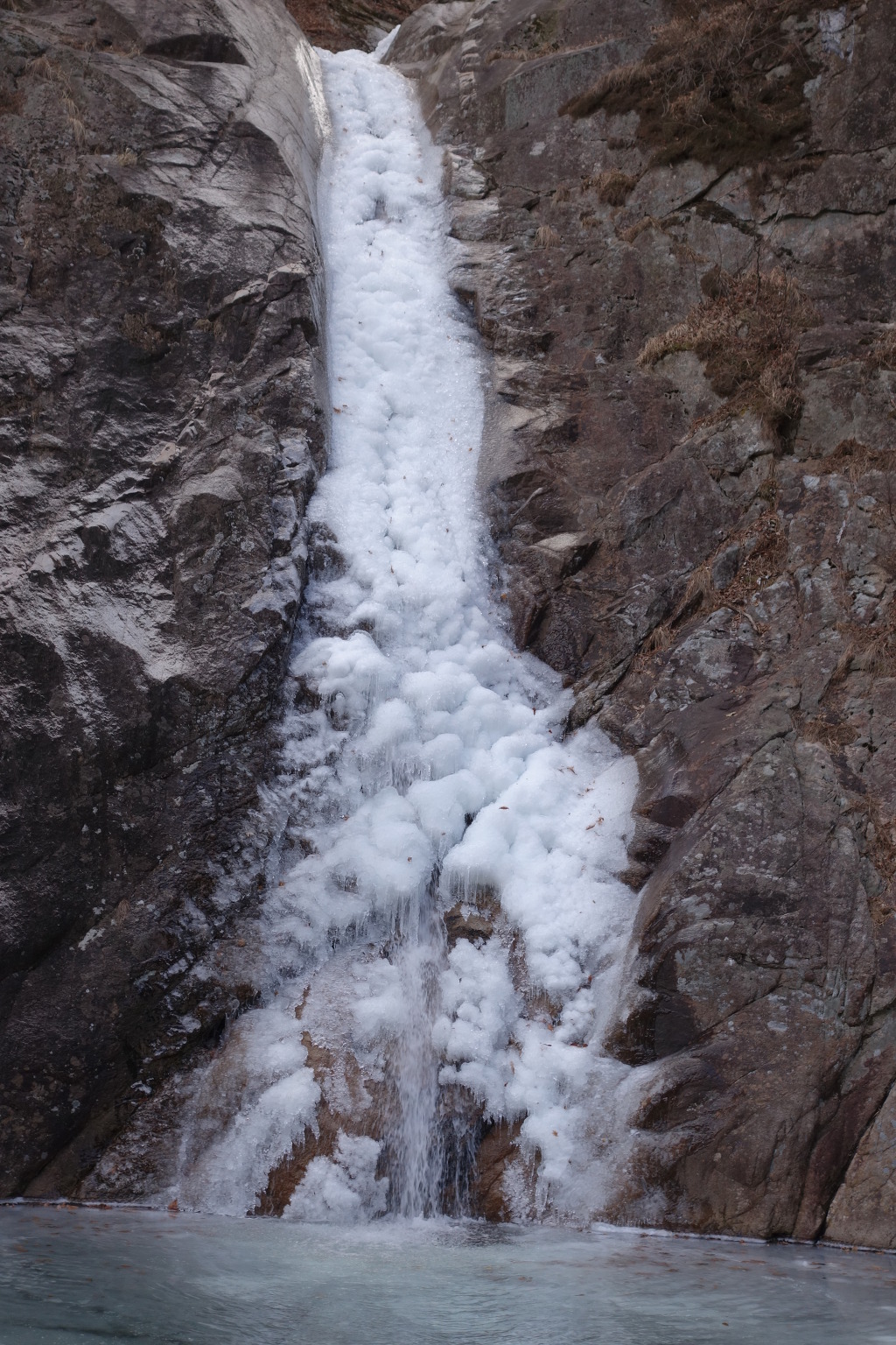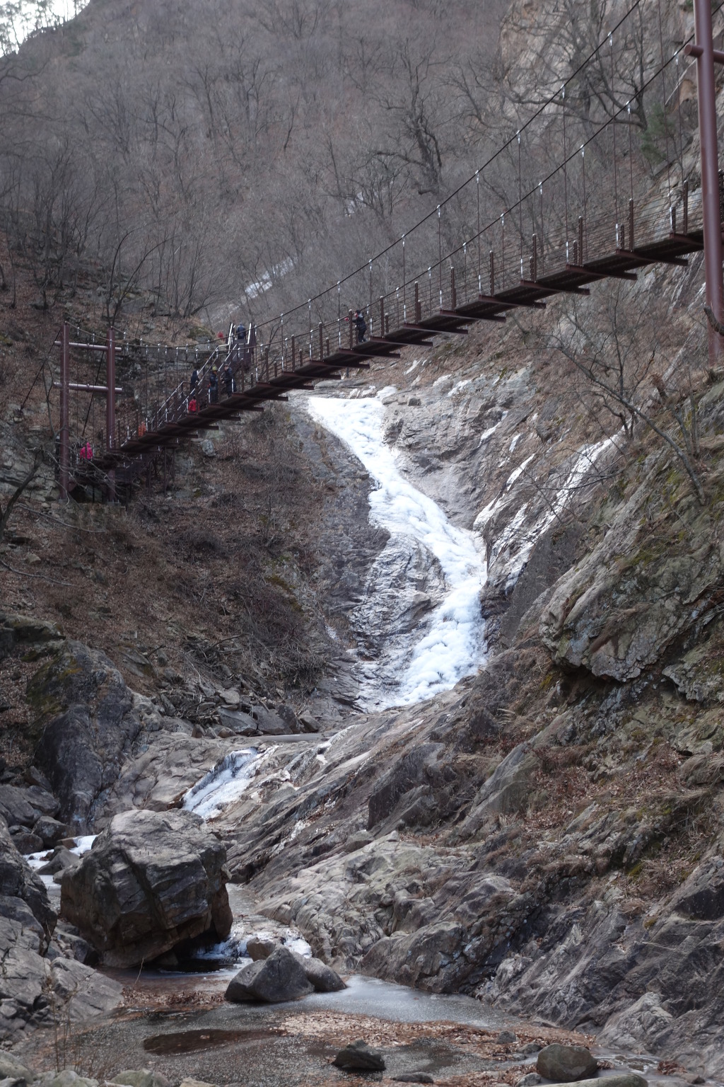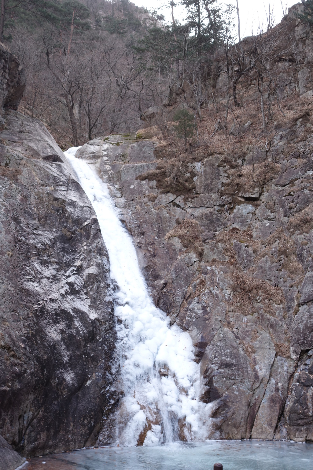 날씨가 따뜻해 계곡이 완전히 얼지는 않고 물이 흐른다.