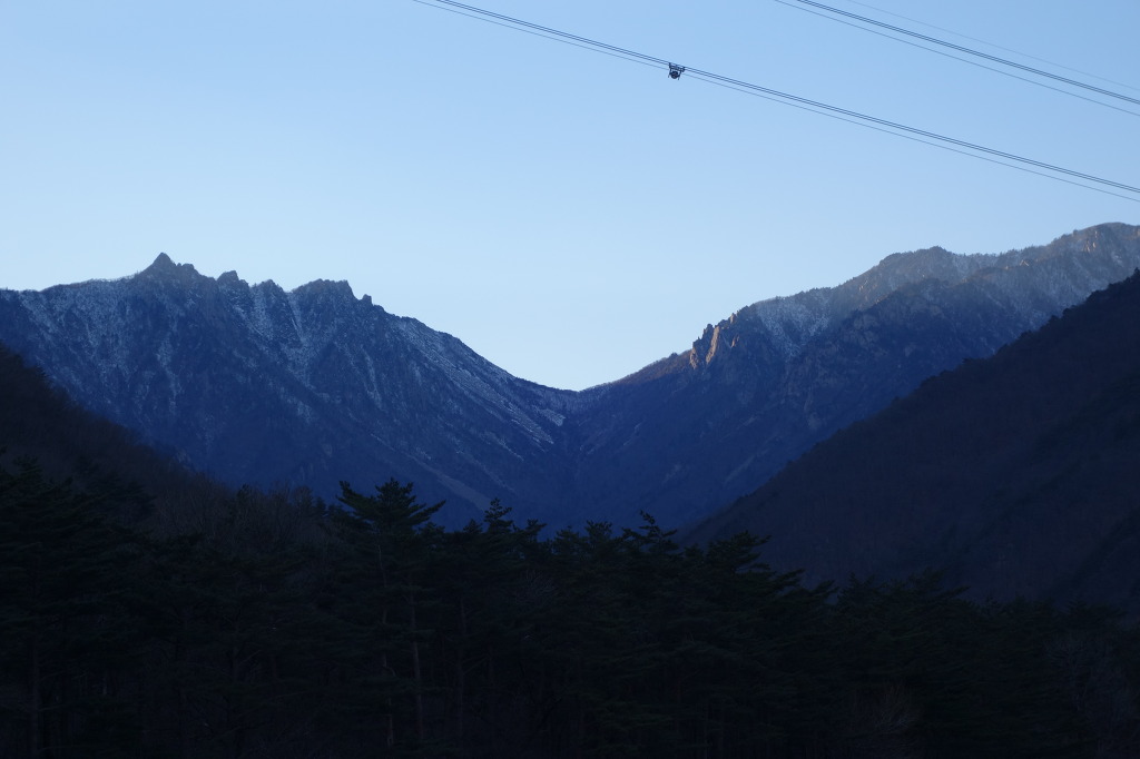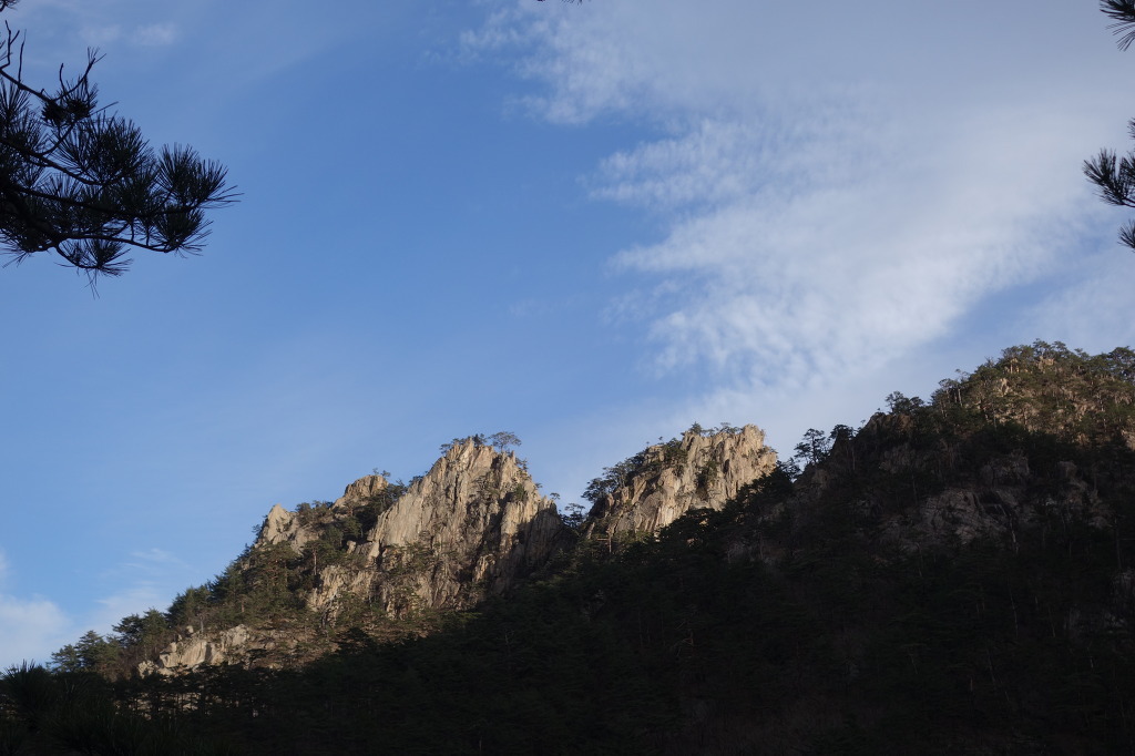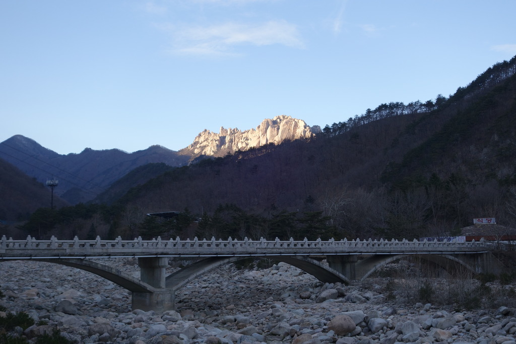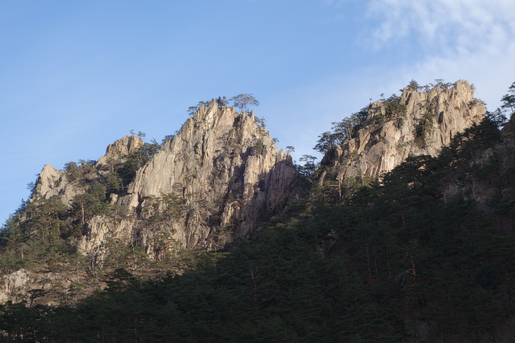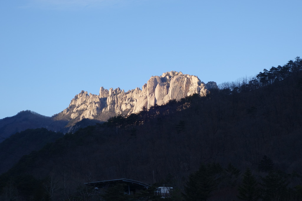 햇빛에 비치는 울산바위가 금빛 처럼 찬란하다.