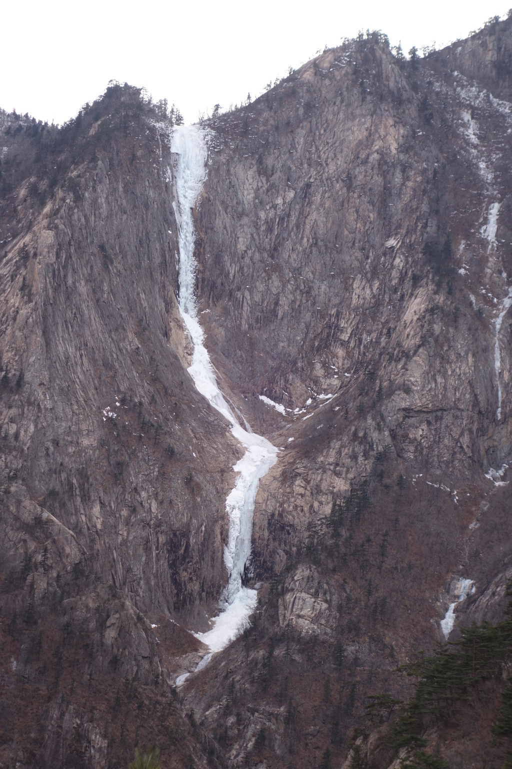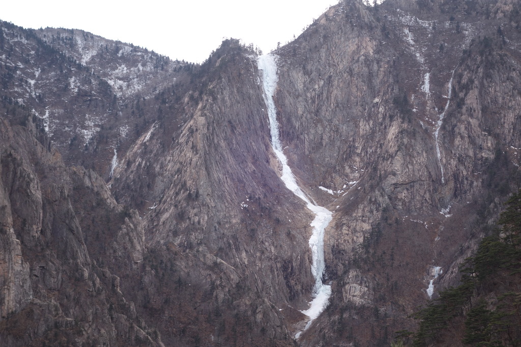 폭포는 석벽 위를 세 번 굽이치며 낙하한다. 상단 150m를 그야말로 ‘폭포처럼’ 쏟아져 내려온 물줄기는 중단 80m를 더 내려와 숨을 고른 뒤, 방향을 틀어 하단 90m 아래로 쏟아져 내린다. 그래서 3단 폭포다. 전체 길이는 320m다.