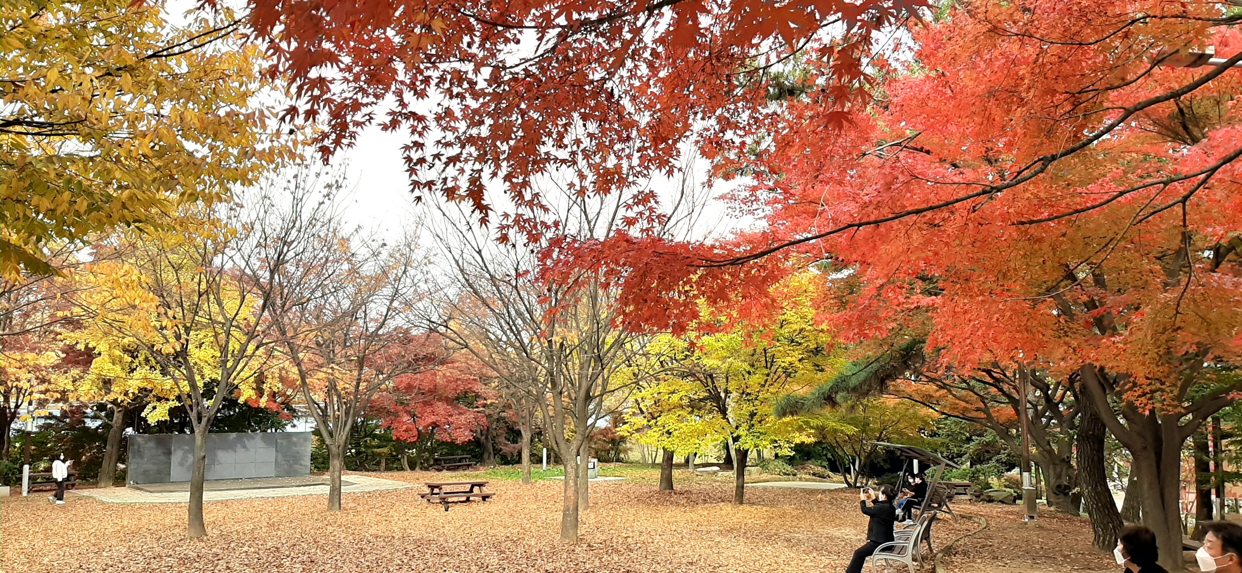만남의 광장이 이 시간 가장 화려한 가을색을 보여준다.