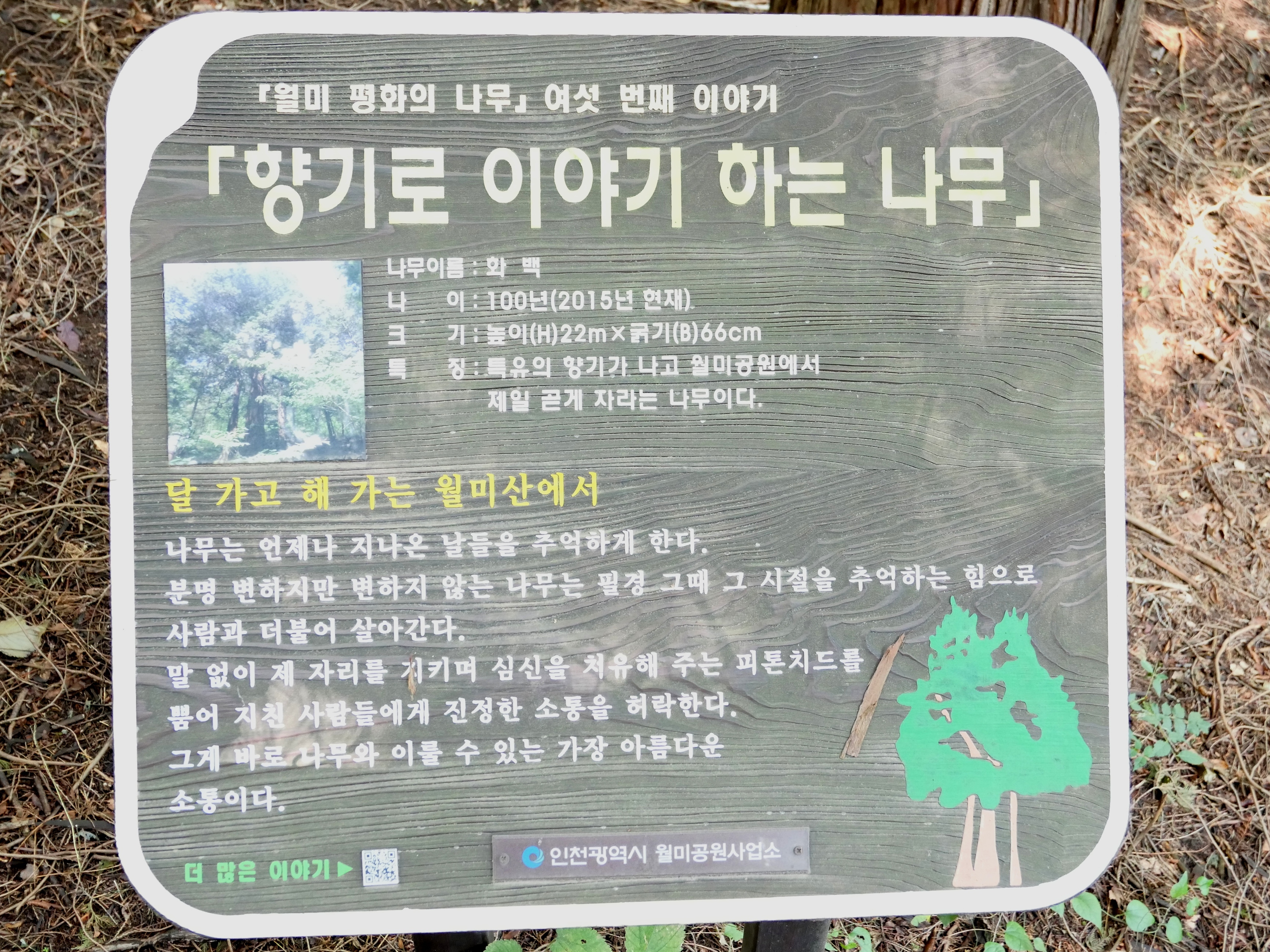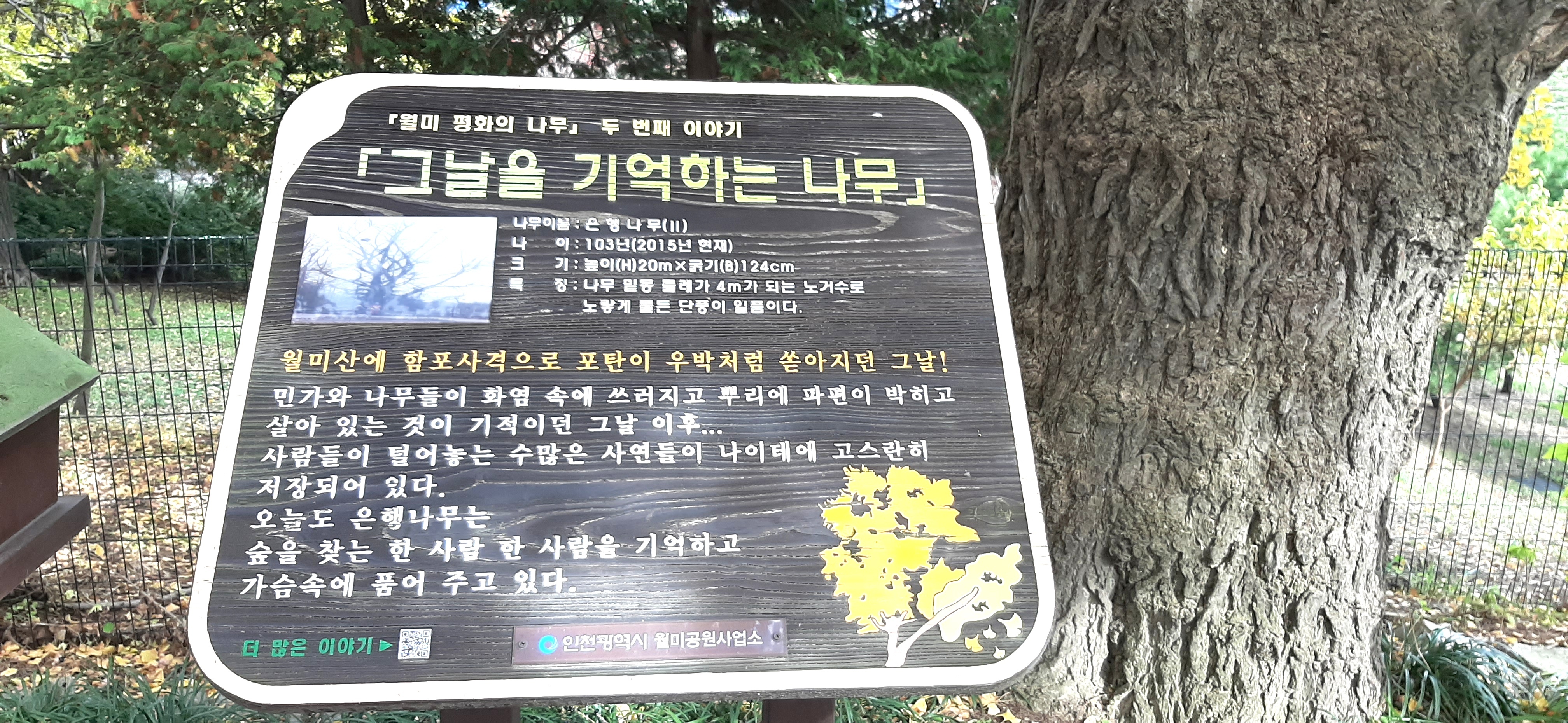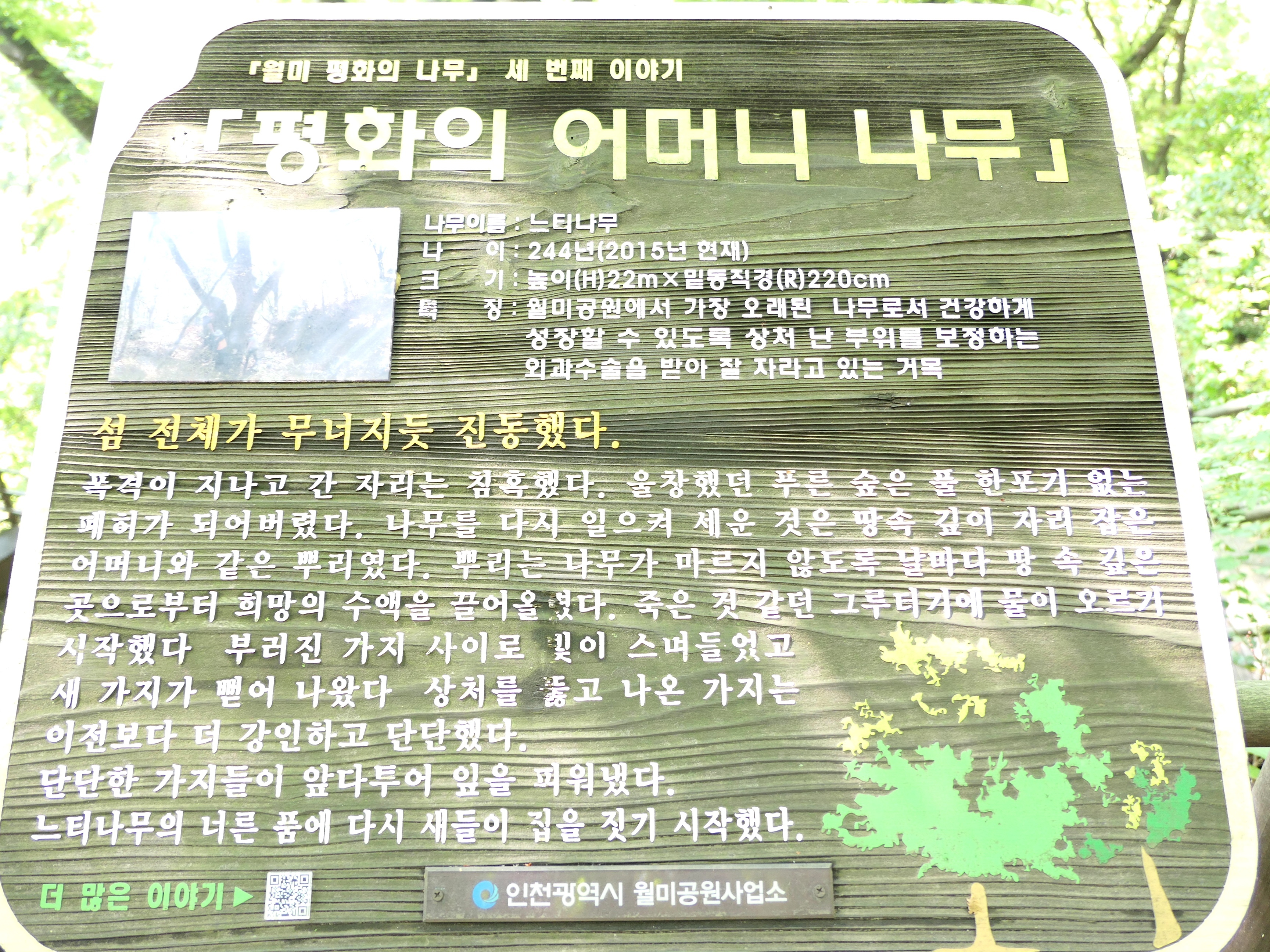 정상을 내려와 둘레길을 지나는 중 평화의 어머니 나무라는 월미도에서 가장 오래된 나무를 만난다.