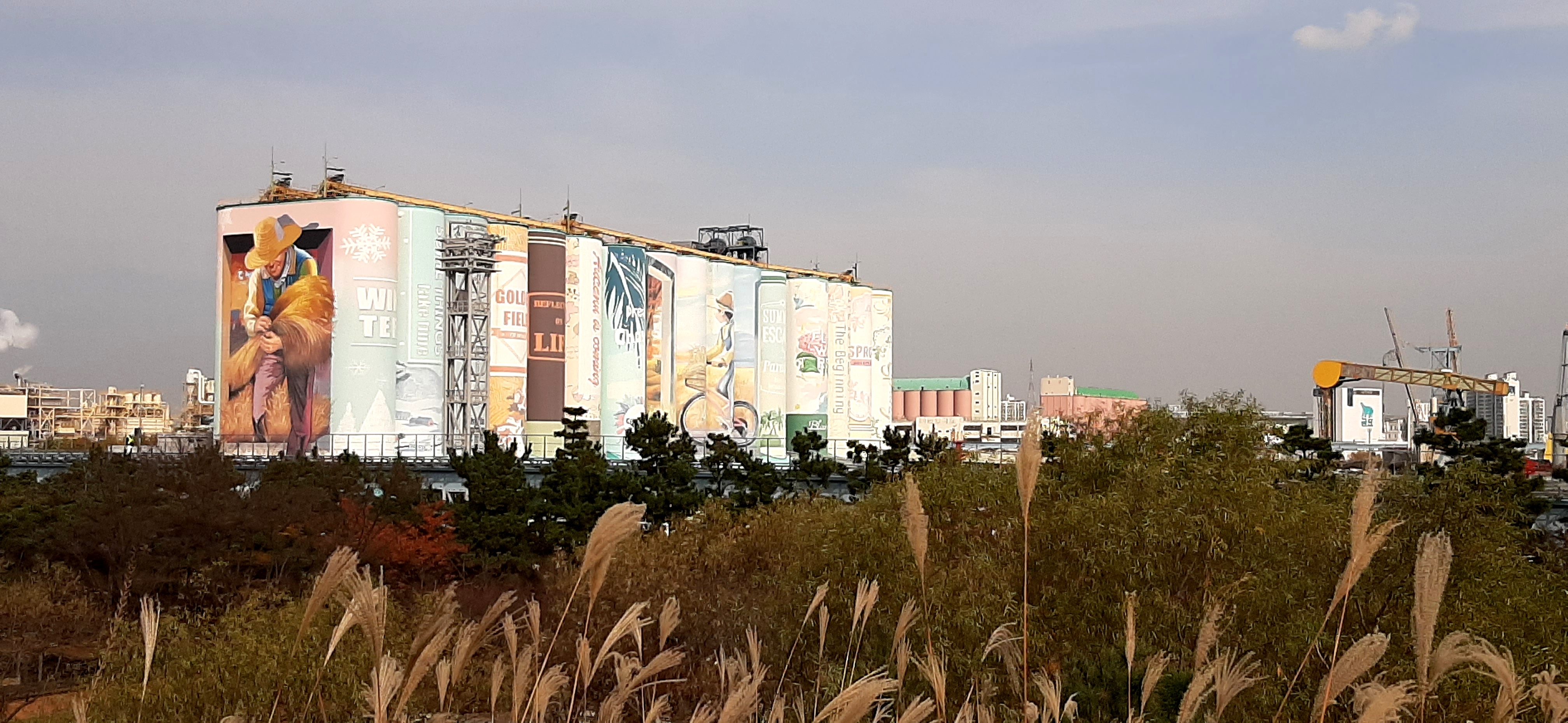월휴정에서 건너다 본 7부두 곡물창고(SILO)의 모습