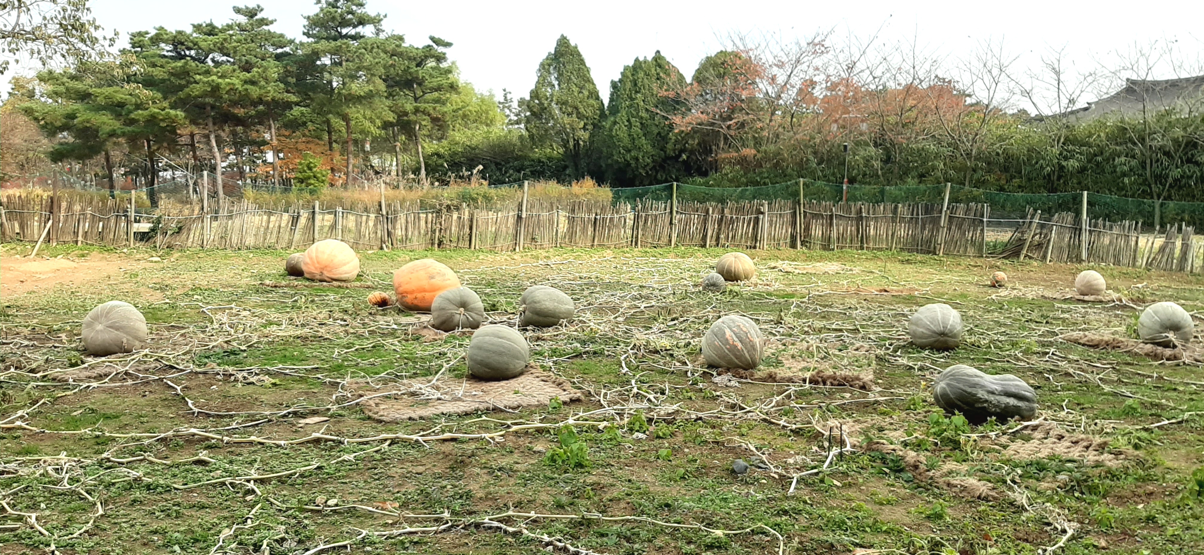 민가정원앞의 호박밭과 쟁기질하는 모습