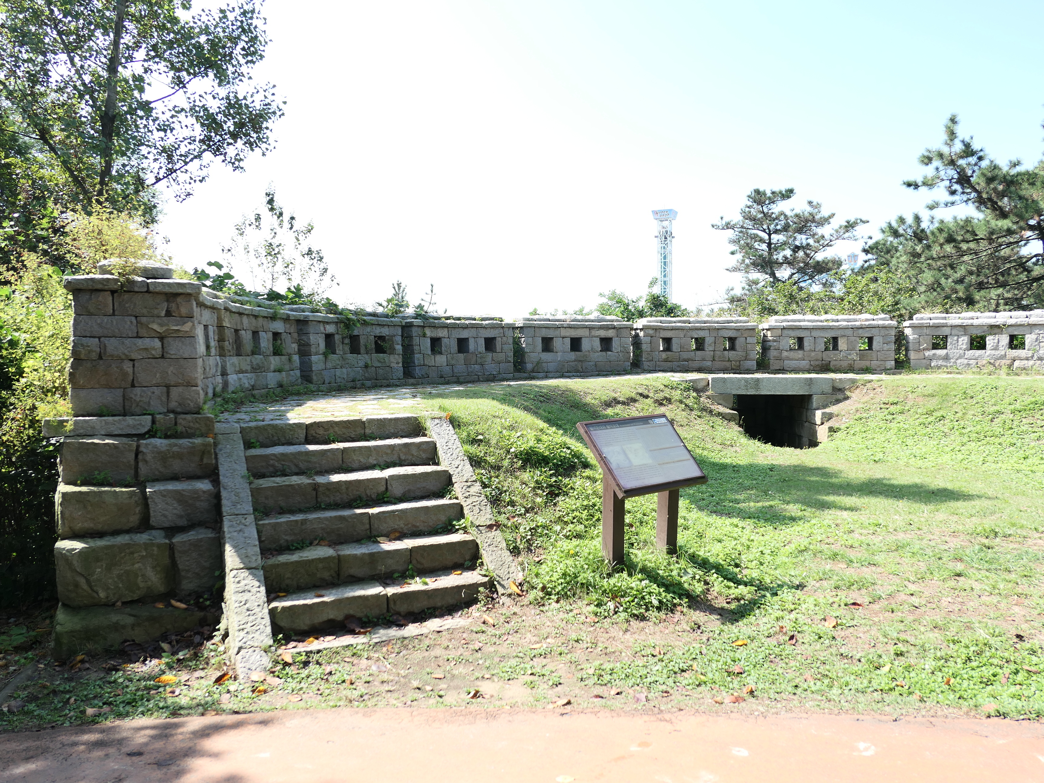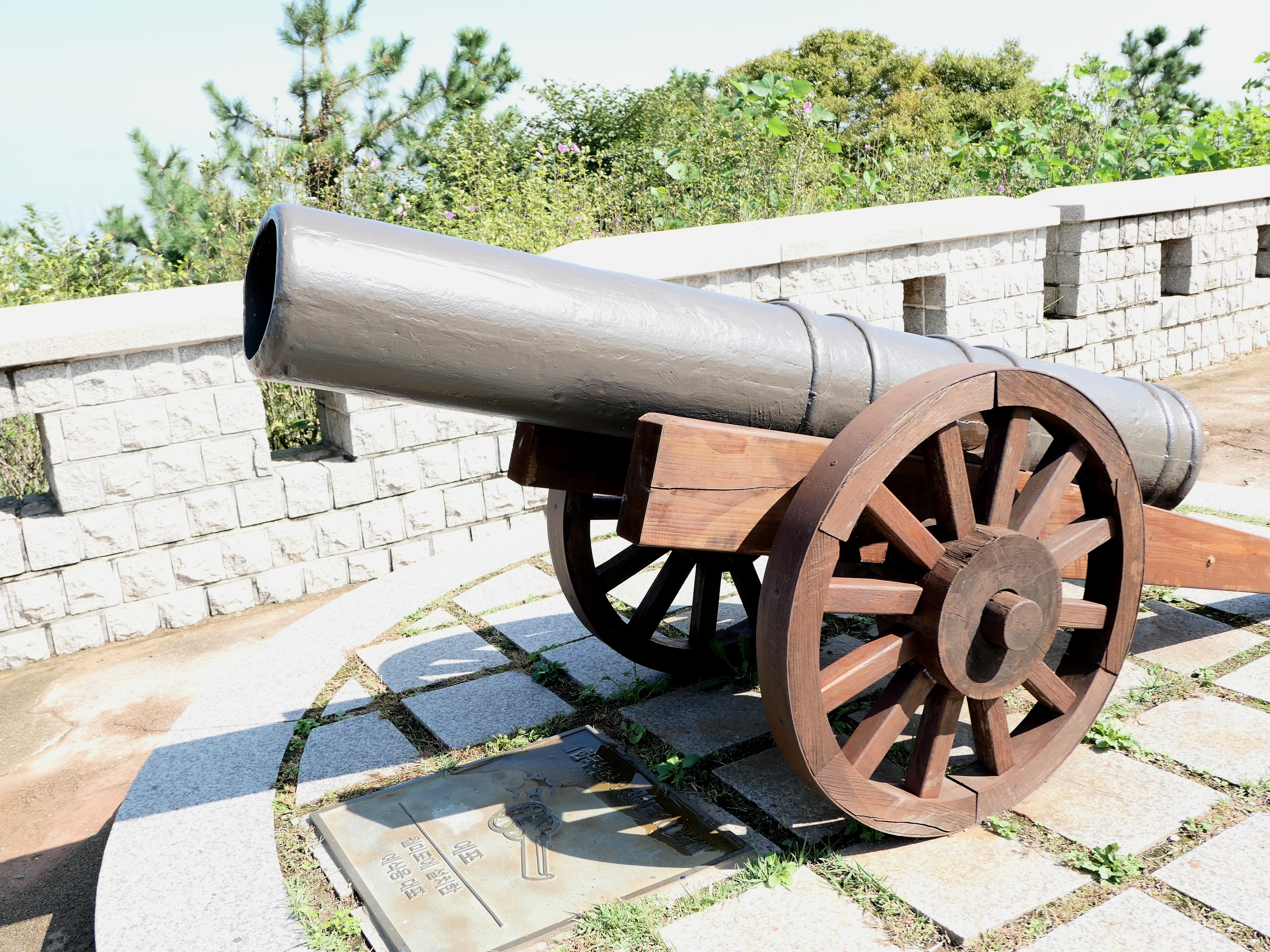 정상에서 조금내려오면 무궁화동산 가운데 예포가 놓여있는데