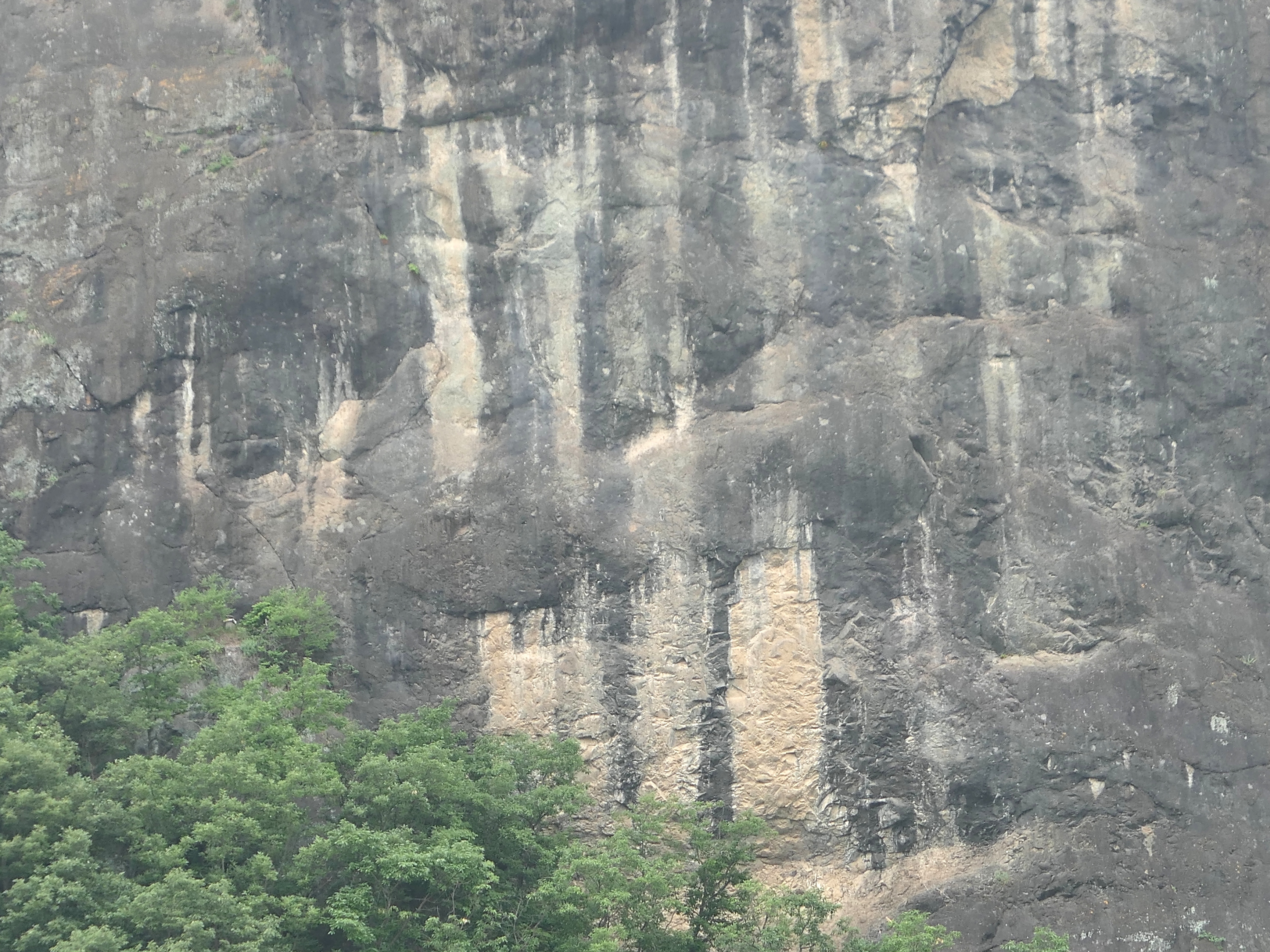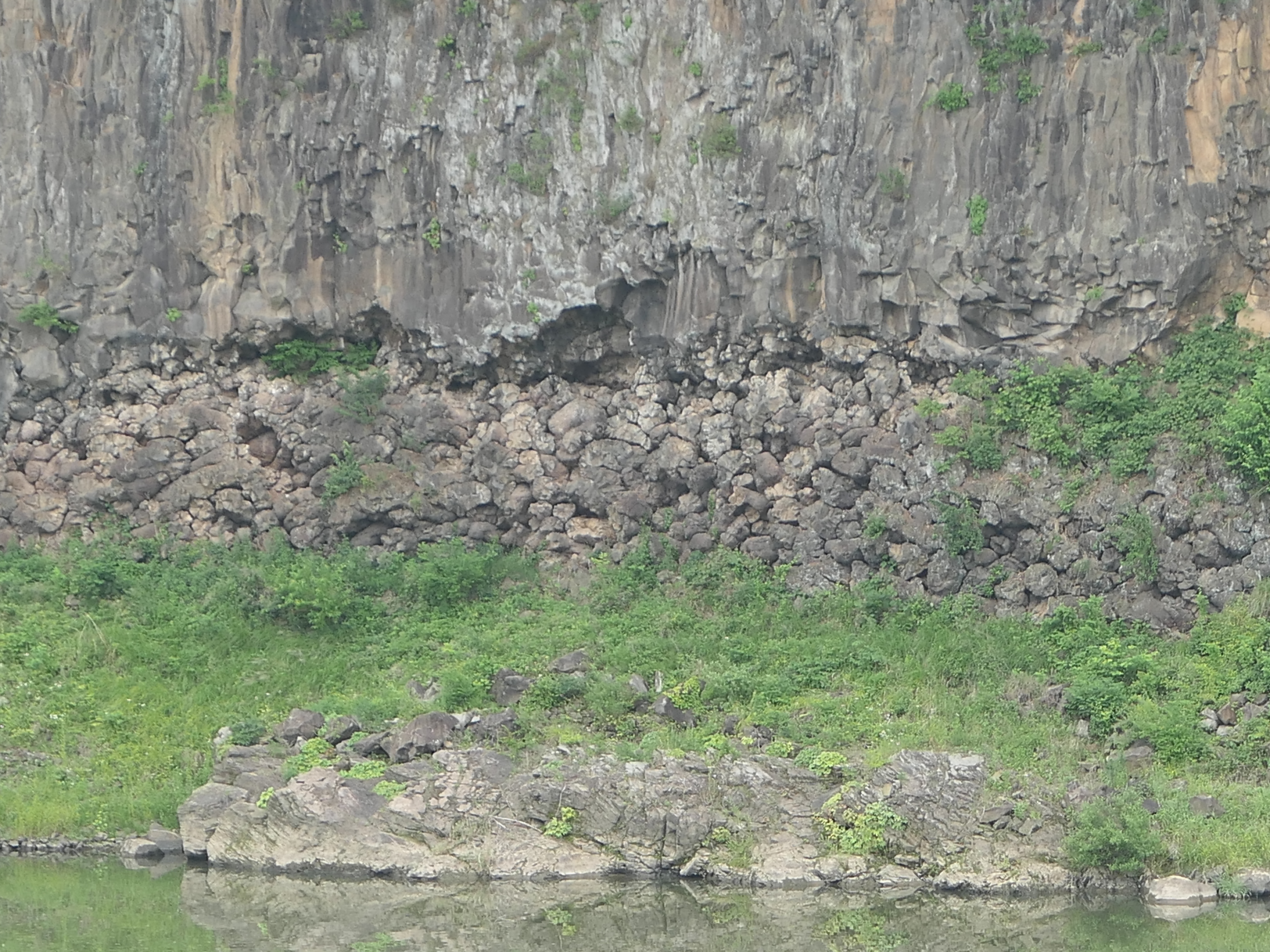 연천쪽 전망대에서 줌으로 당겨보면 주상절리 하단부에 베개용암이 쌓여 있는 것이 확인된다.