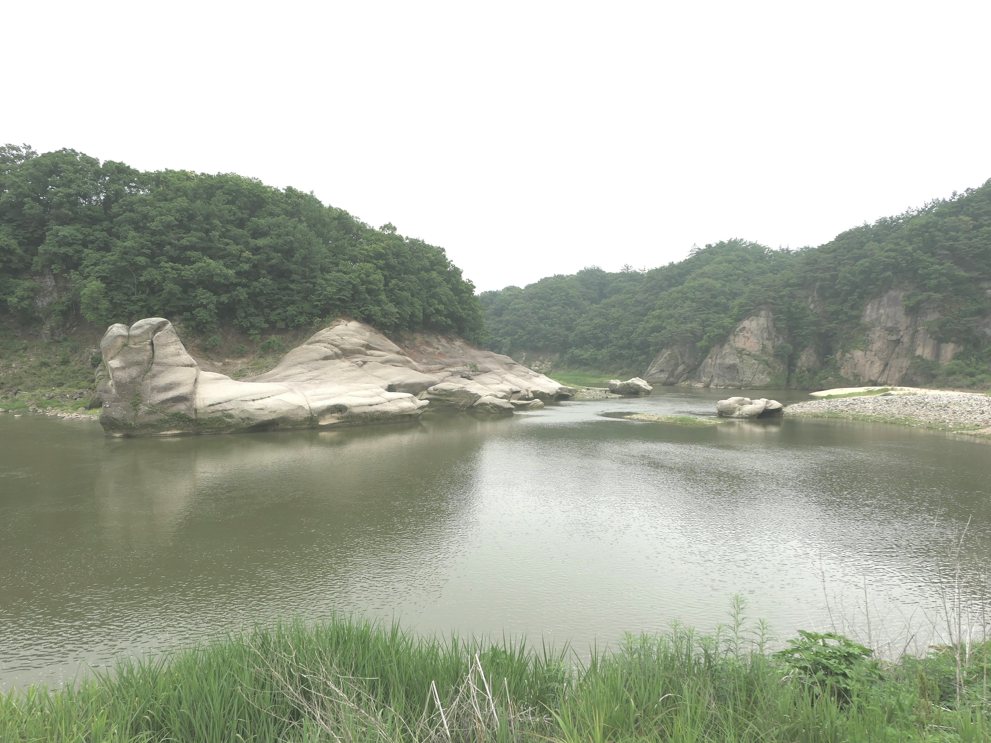 중생대 백악기 화강암으로 주변에 다양한 암석들이 분포해 있고 주상절리, 포획암, 포트홀, 그루브 등