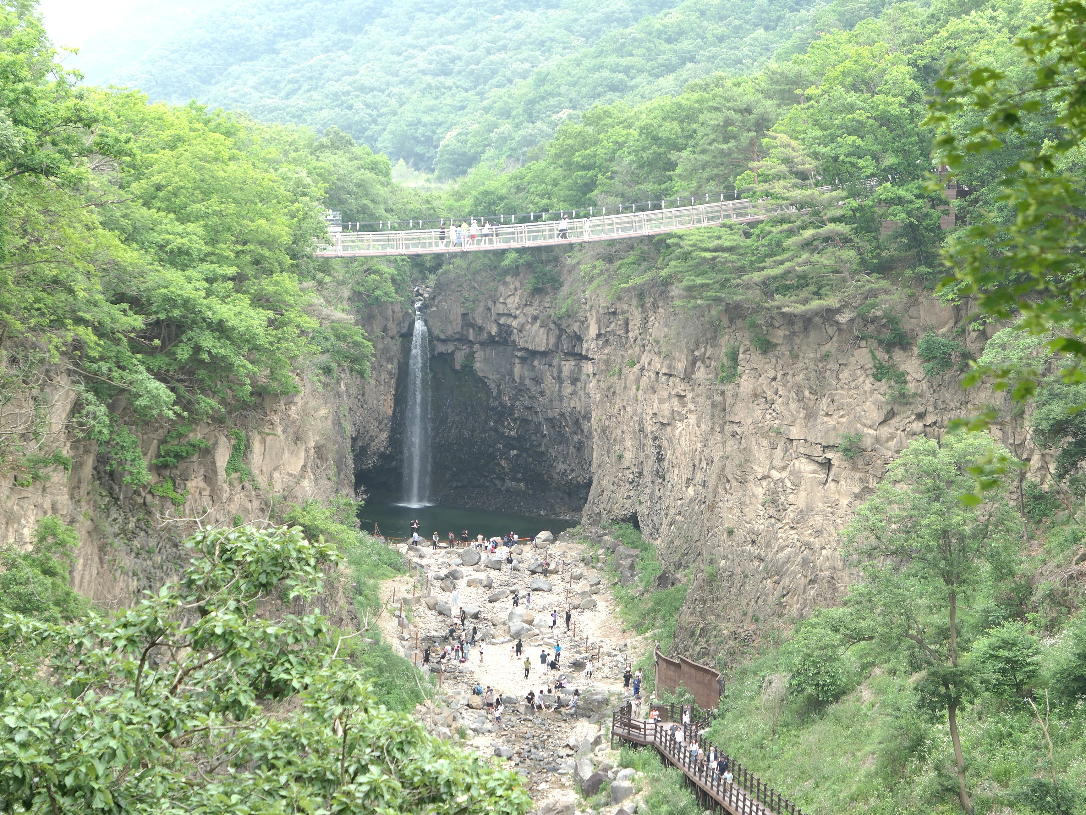 80m 길이의 출렁다리에서 가까이 폭포를 내려다 볼 수 있고